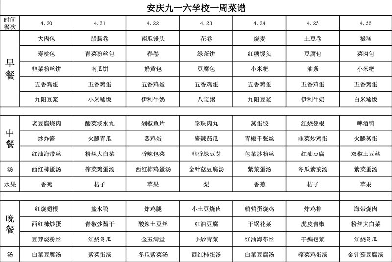 2020.4.20—2020.4.26食堂菜谱
