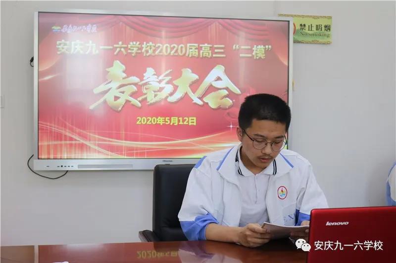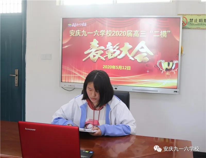 为表扬先进,鼓舞士气,进一步坚定高三学子冲刺大学梦想的信念,5月12日下午,我校召开2020届高三年级“安庆二模”表彰大会,对二模取得优异成绩和显著进步的高三学子进行表彰。本次大会通过钉钉系统在高三各班级全程直播。