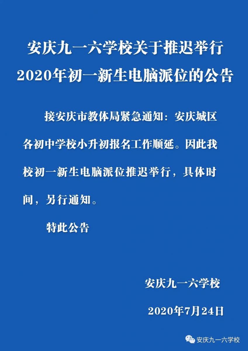 关于推迟举行2020年初一新生电脑派位的公告