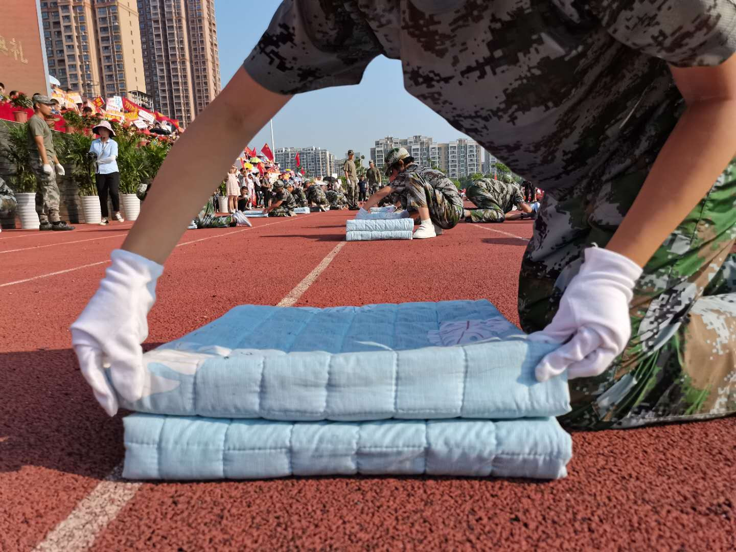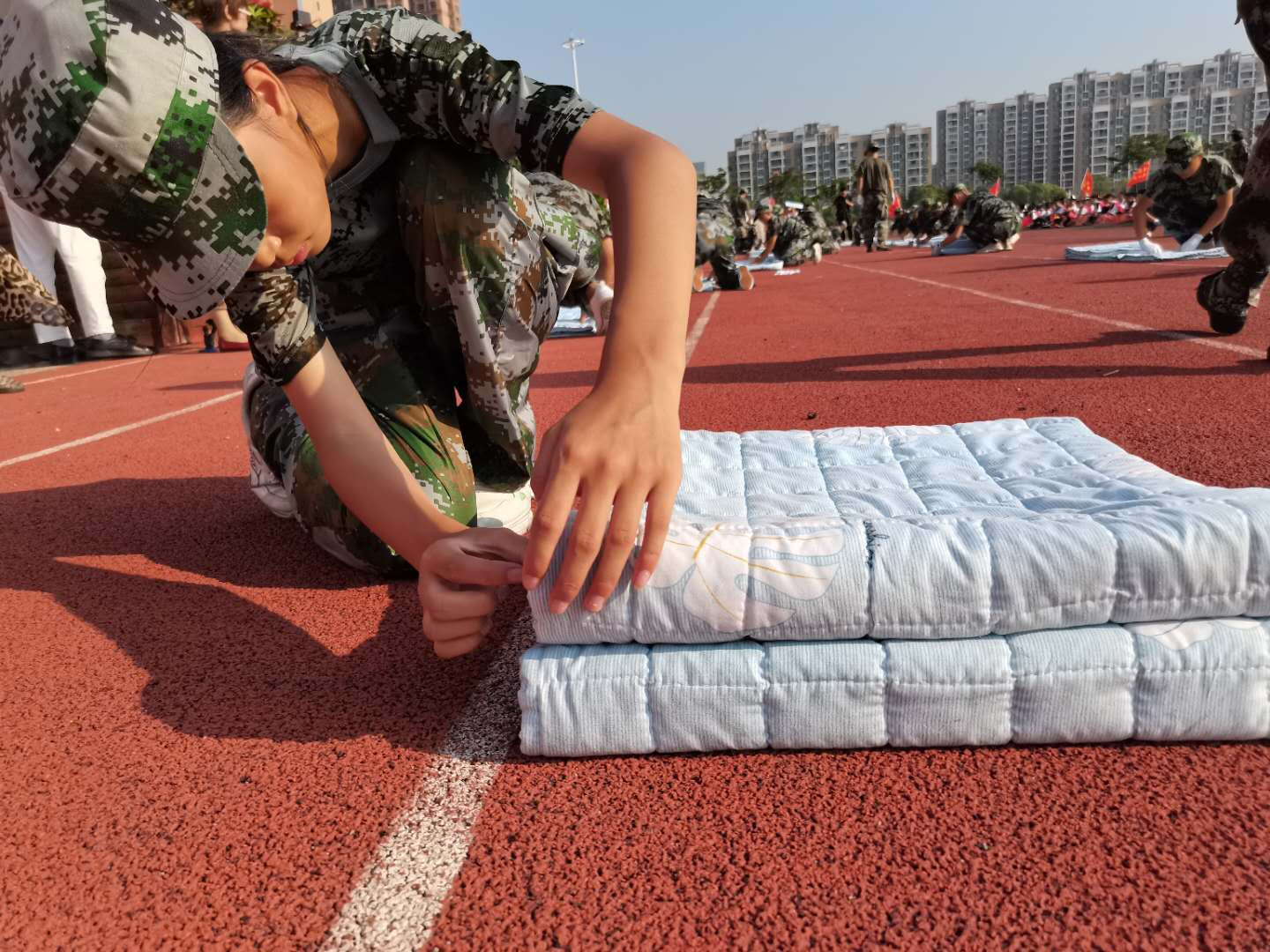 同学们以蓬勃的朝气、飒爽的英姿、嘹亮的口号、昂扬的斗志充分展现青春的靓丽风采。在教官的带领下各班各年级分别进行成果展示的有:五分钟的站军姿表演、两次半蹲表演、原地踏步齐喊《经典口号》、叠被子、跑操汇演和《感恩的心》手语表演等。同学们以整齐的队列、具有班级精神的口号、饱满的激情和铿锵有力的动作展示军训成果,也展现了九一六学校学子不怕吃苦、奋发进取的精神面貌,赢得了现场领导、老师和家长们的阵阵掌声。