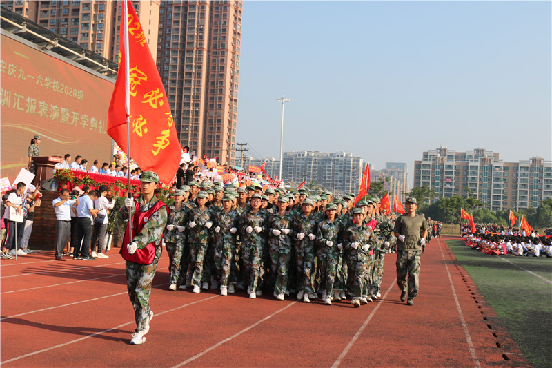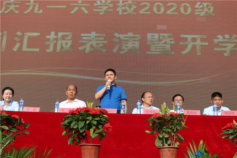 最后,学校校长何仲华宣布:安庆九一六学校2020级新生军训汇报演出暨开学典礼圆满结束!