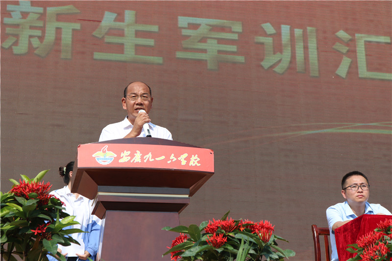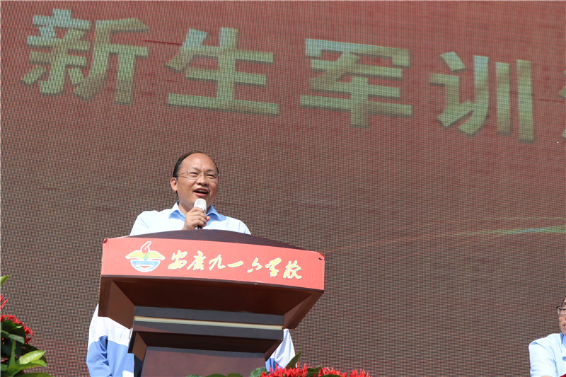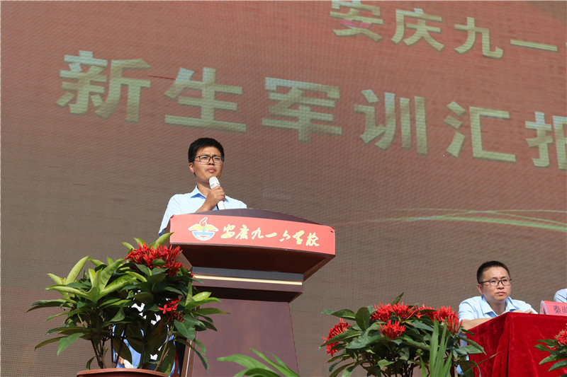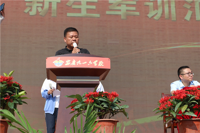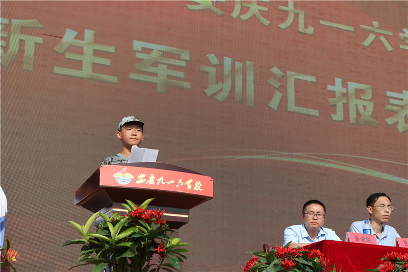 王浩宇同学代表全校新生作了发言。慷慨陈词的王同学恰如毛主席笔下的同学少年,风华正茂。他说军训教会他们“爱”与“责任”,军训是短暂而充实、辛苦而难忘的,通过军训的历练,他们已不再是温室的花朵,大家充满信心与决心迎接挑战,三年以后一定成为九一六的骄傲!