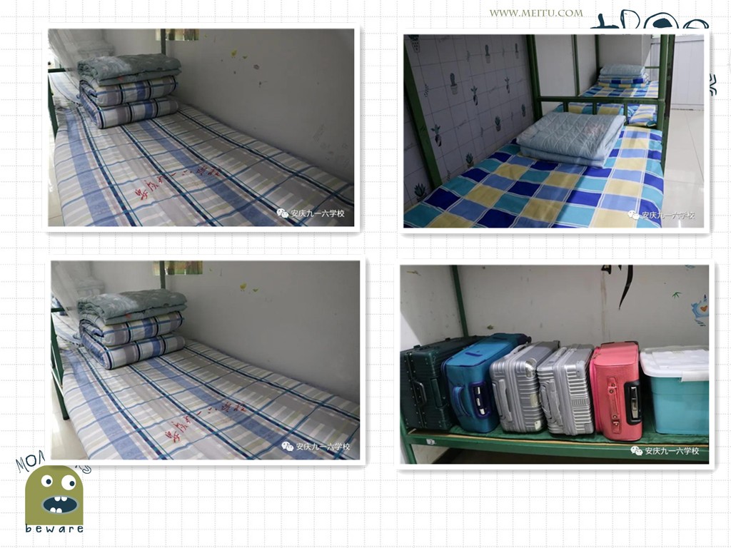 学校是个温暖的地方,有勤奋的艰辛更有快乐的欢笑。如果你们希望中学生活多点不一样的颜色,那么寝室会是一个值得期待的地方。