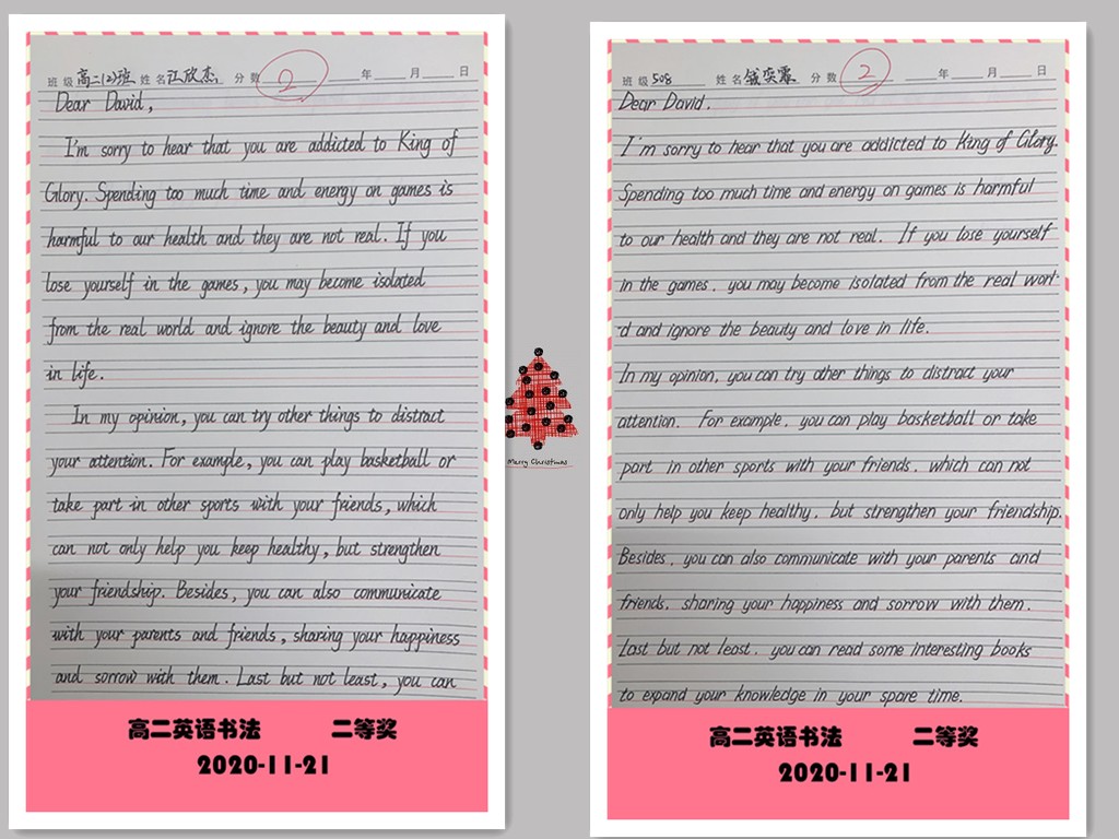 【秀英文魅力,展文墨风采】高二年级英语书写比赛优秀作品展