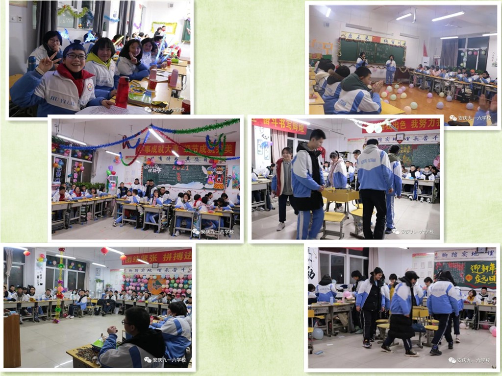 挥舞丹青 流光溢彩 凯歌高奏辞旧岁,一元复始气象新。为庆祝2021年的到来,进一步丰富学生的校园文化生活,12月31日晚,各班精心准备了元旦文艺联欢活动。学校全体师生共同参与,整个校园沉浸在欢乐祥和的气氛之中。 凯歌高奏辞旧岁,一元复始气象新。为庆祝2021年的到来,进一步丰富学生的校园文化生活,12月31日晚,各班精心准备了元旦文艺联欢活动。学校全体师生共同参与,整个校园沉浸在欢乐祥和的气氛之中。 学校领导逐一到各班进行节日慰问,共同回顾实“鼠”不易的2020年,展望“牛”气冲天的2021年,为师生们送去节日祝福。 元旦联欢活动在欢声笑语中结束了。新的征程已经到来,我们将在新的起点继续展开双臂,拥抱世界。让我们只争朝夕,不负韶华,共同搭乘2021年的航船,驶向光辉美好的未来!