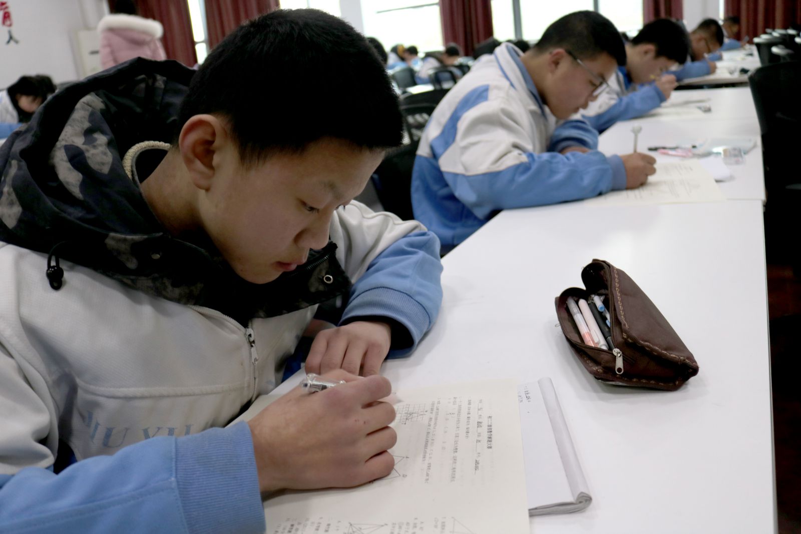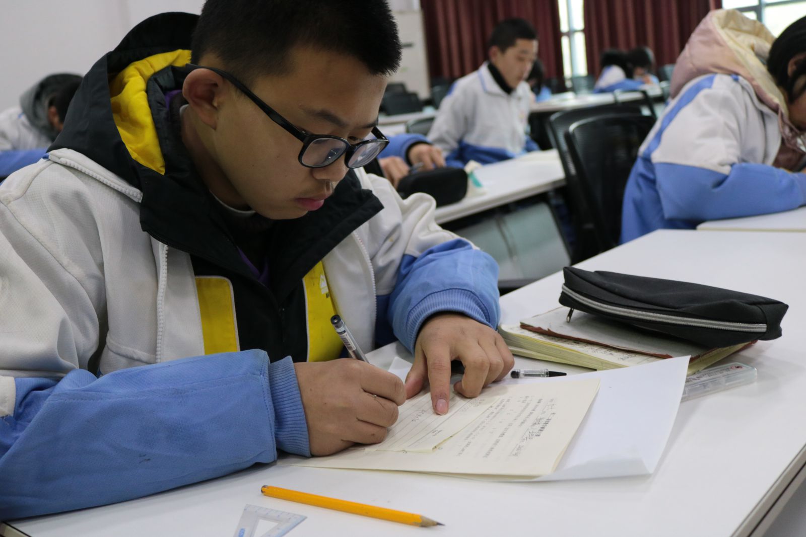竞赛活动开始了,同学们认真思考,沉着应答,个个神情专注,比准确、比速度、比思维、比智慧,分秒必争,竭尽所能把自己的智慧书写在考卷上。