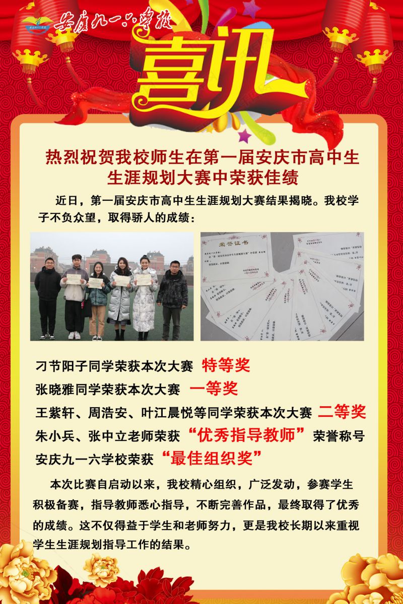 热烈祝贺我校师生在第一届安庆市高中生生涯规划 大赛中荣获佳绩