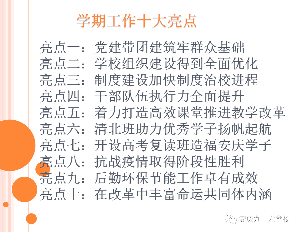 最后,何校长激励大家在新的一年里,坚持党对教育事业的全面领导,加强学校管理,不断提升教师队伍素质,持续推进教育教学改革,潜心打造九一六特有的校园文化,全面提升教育教学质量,办负责任的教育,办人民满意的教育,办伟大学校。