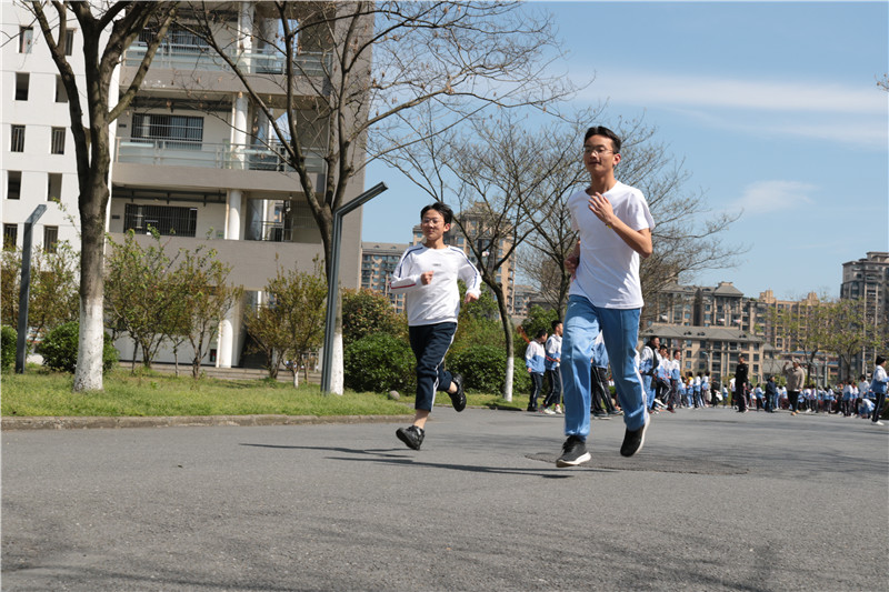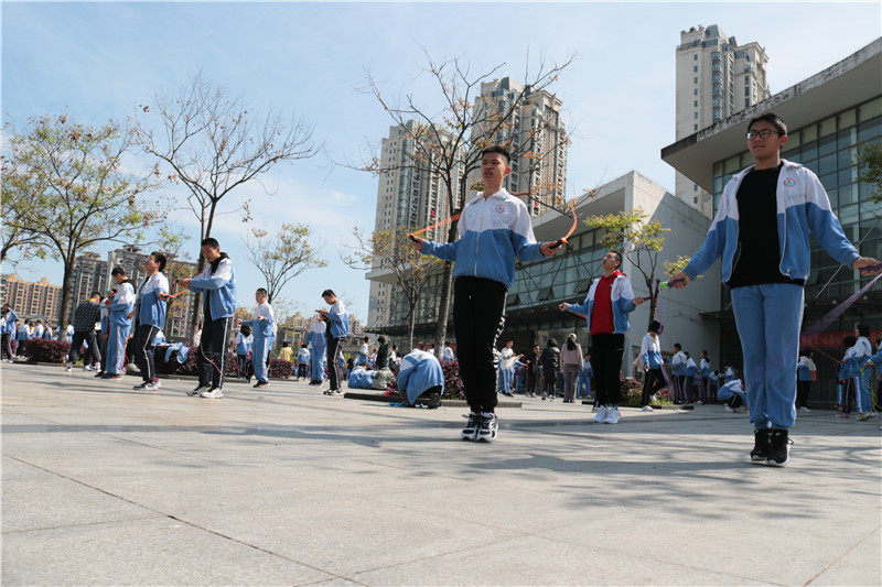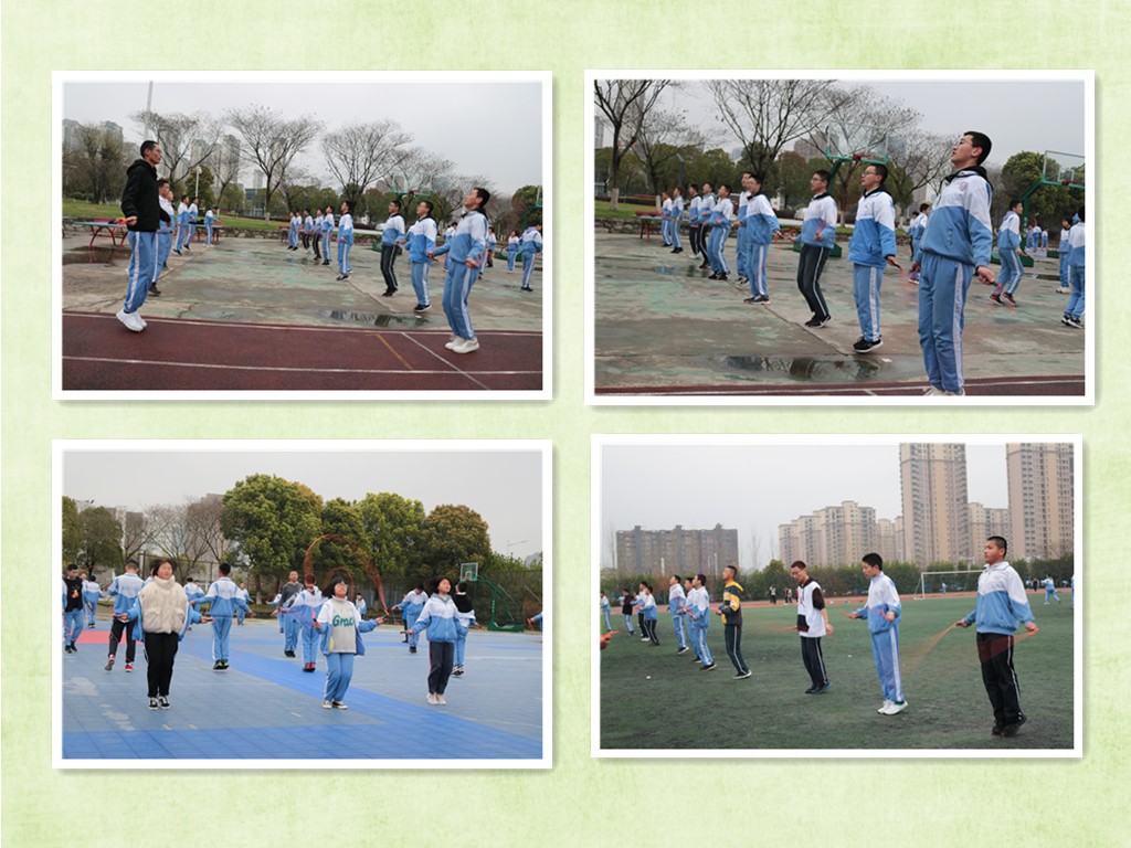体育中考是初三年级毕业考试的“第一战”,为了打响这头一炮,全体师生拧成一股绳,坚持利用上午大课间、体育课和下午活动课等时段,来到操场积极进行长跑、跳绳、坐位体前屈等中考项目的常规训练。班主任到场严格组织,鼓励同学树立信心;体育教师现场巡视,查找不足,加强指导;同学们积极参与,严格按照要求刻苦训练。整个校园呈现出一派生机勃勃、活力四射的景象,同学们个个精神饱满,朝气蓬勃。