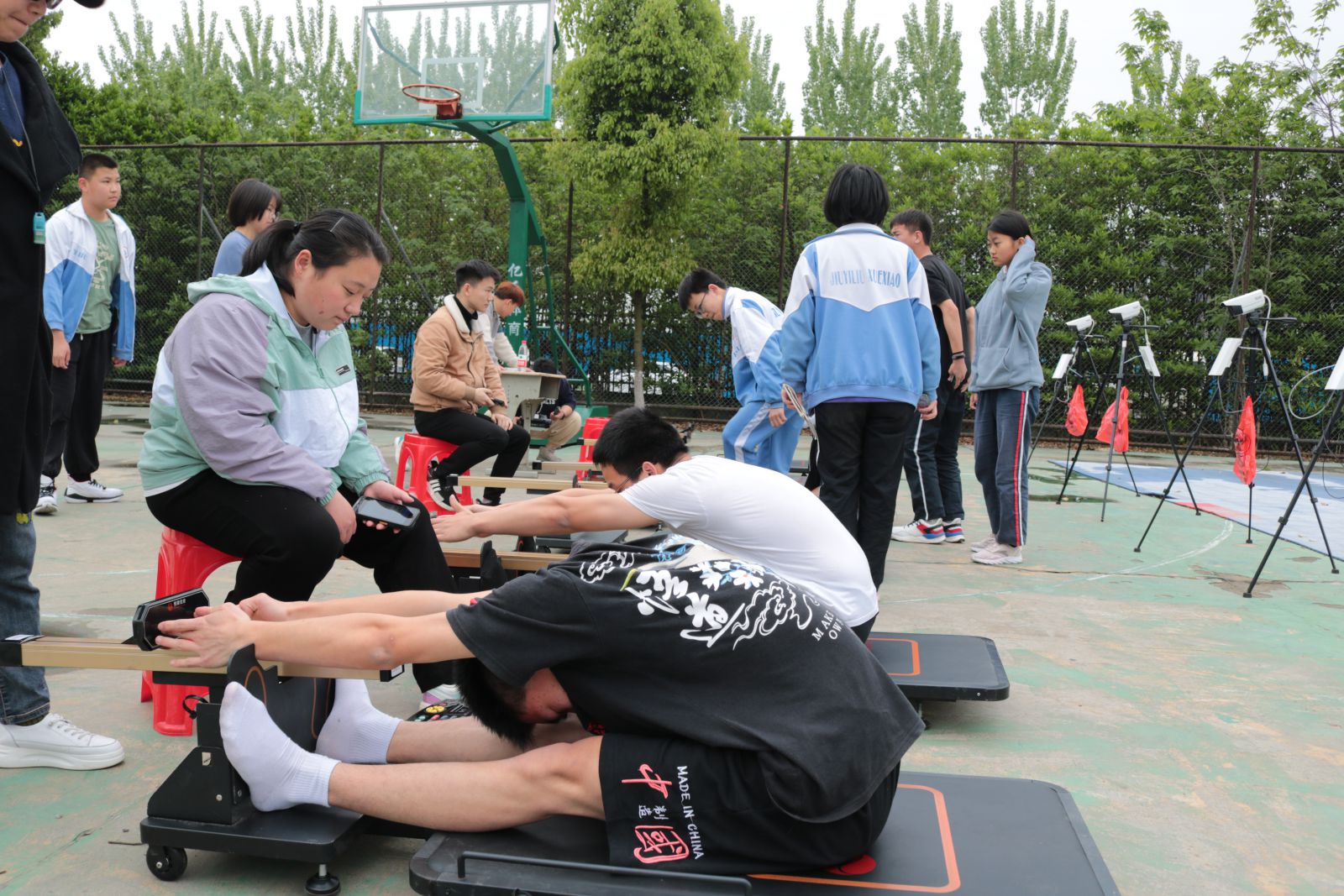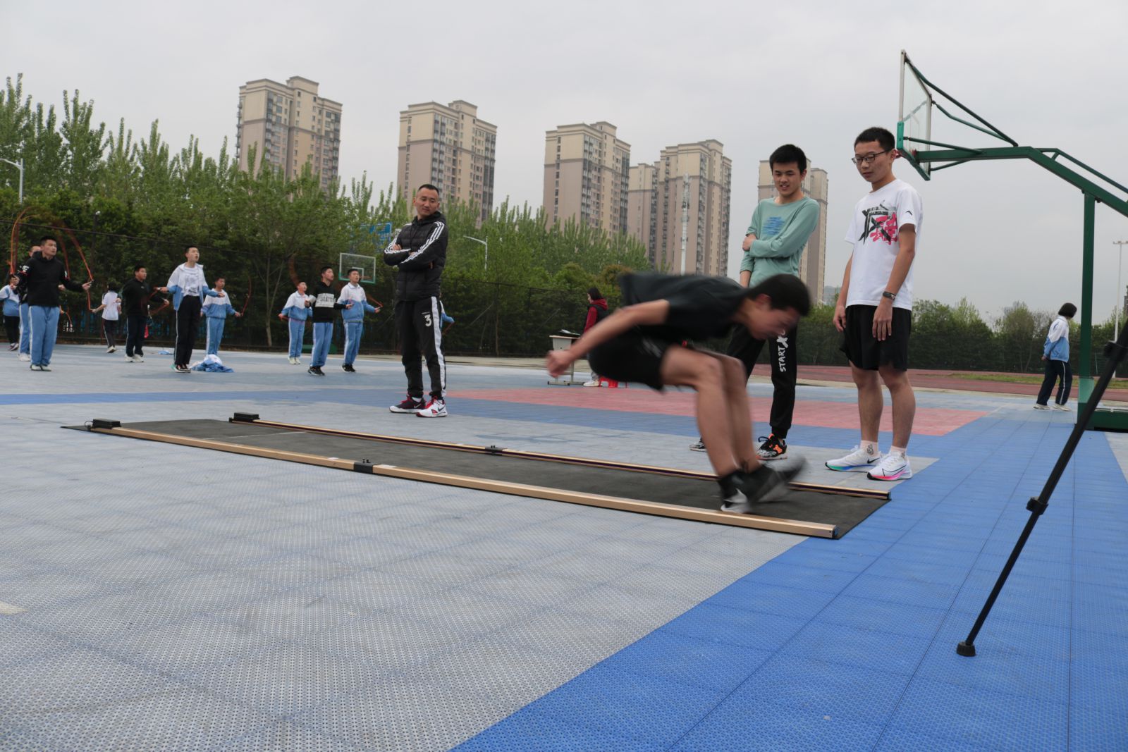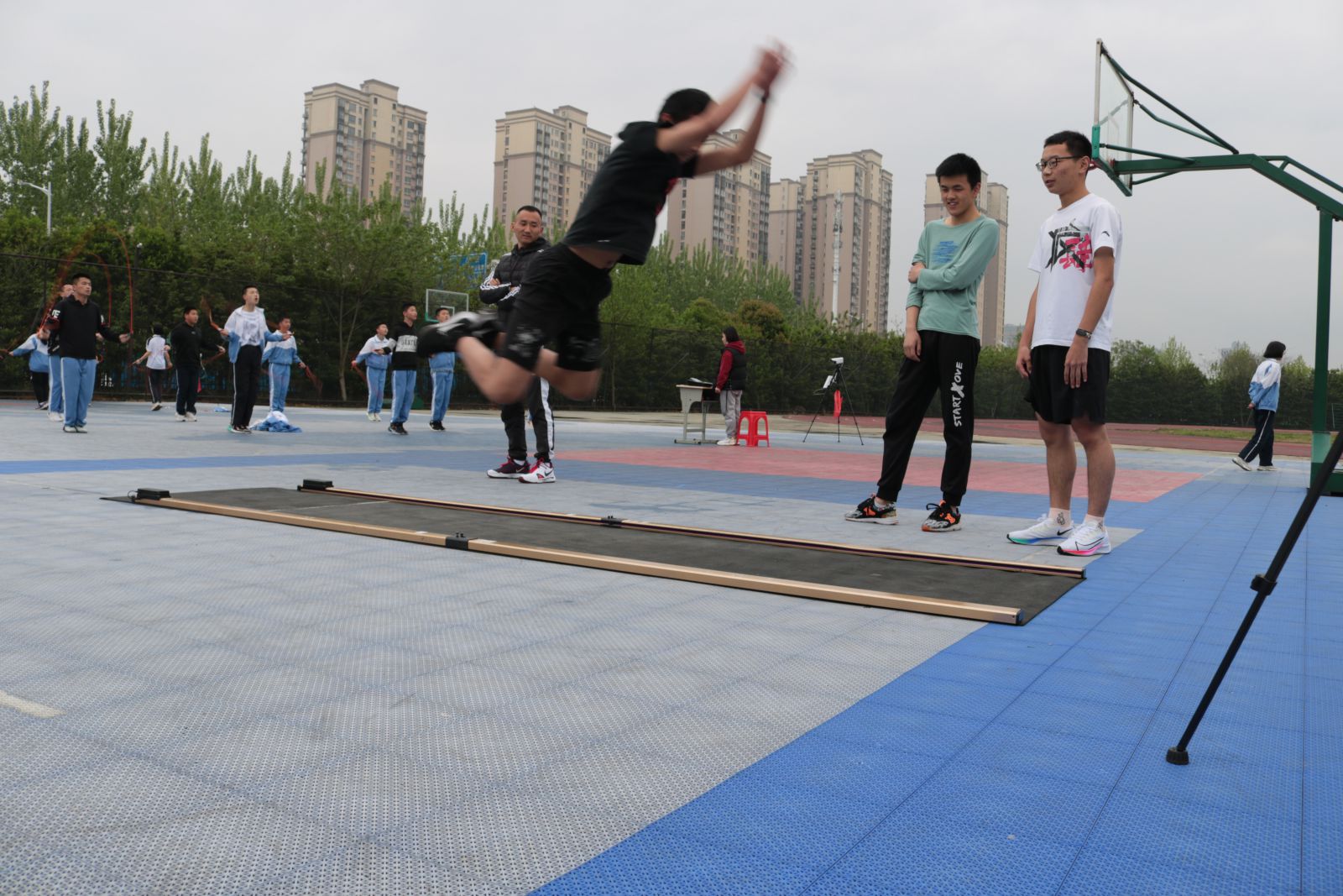 时间的车轮跨入了四月份,距离中考体育测试越来越近,为了让同学们熟悉考试程序、规则,积累应试经验,同时查找学生在体育训练中存在的问题与不足,为冲刺体育中考蓄势助力,4月12日下午,我校组织初三年级全体学生开展中考体育模拟测试。 初三年级组全体老师做了精心策划和充分准备。本次体育模拟测试严格按照市体育中考方案的标准,考试项目包括:篮球、足球、跳绳、立定跳远、实心球、坐位体前屈、男生1000米和女生800米等项目。测试期间,老师认真负责,级部主任和班主任全程陪同和鼓励,计分组的工作人员一丝不苟。在各个考试场地上,同学们精神抖擞、活力四射,以坚韧拼搏执着的精神进行着每一个项目。