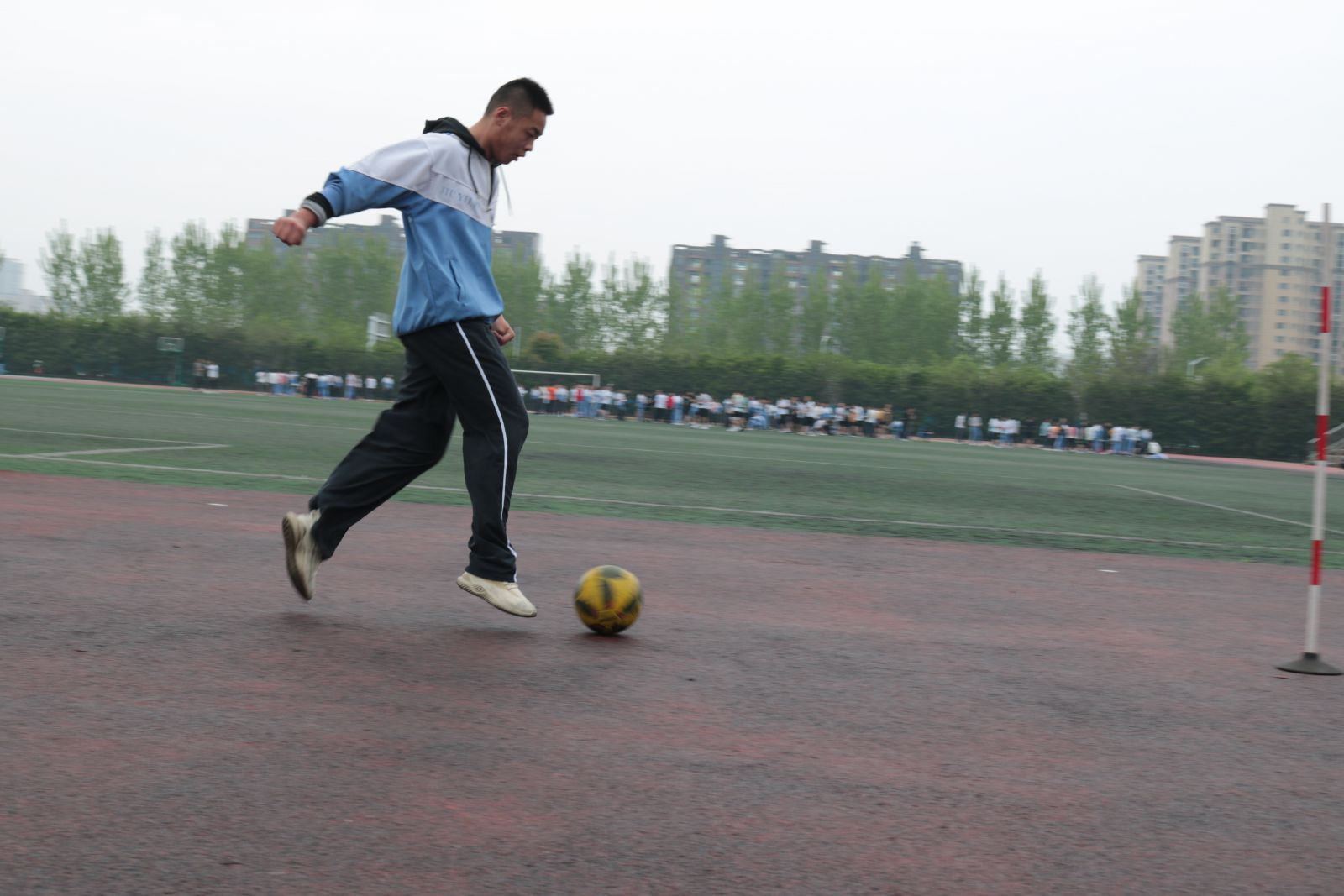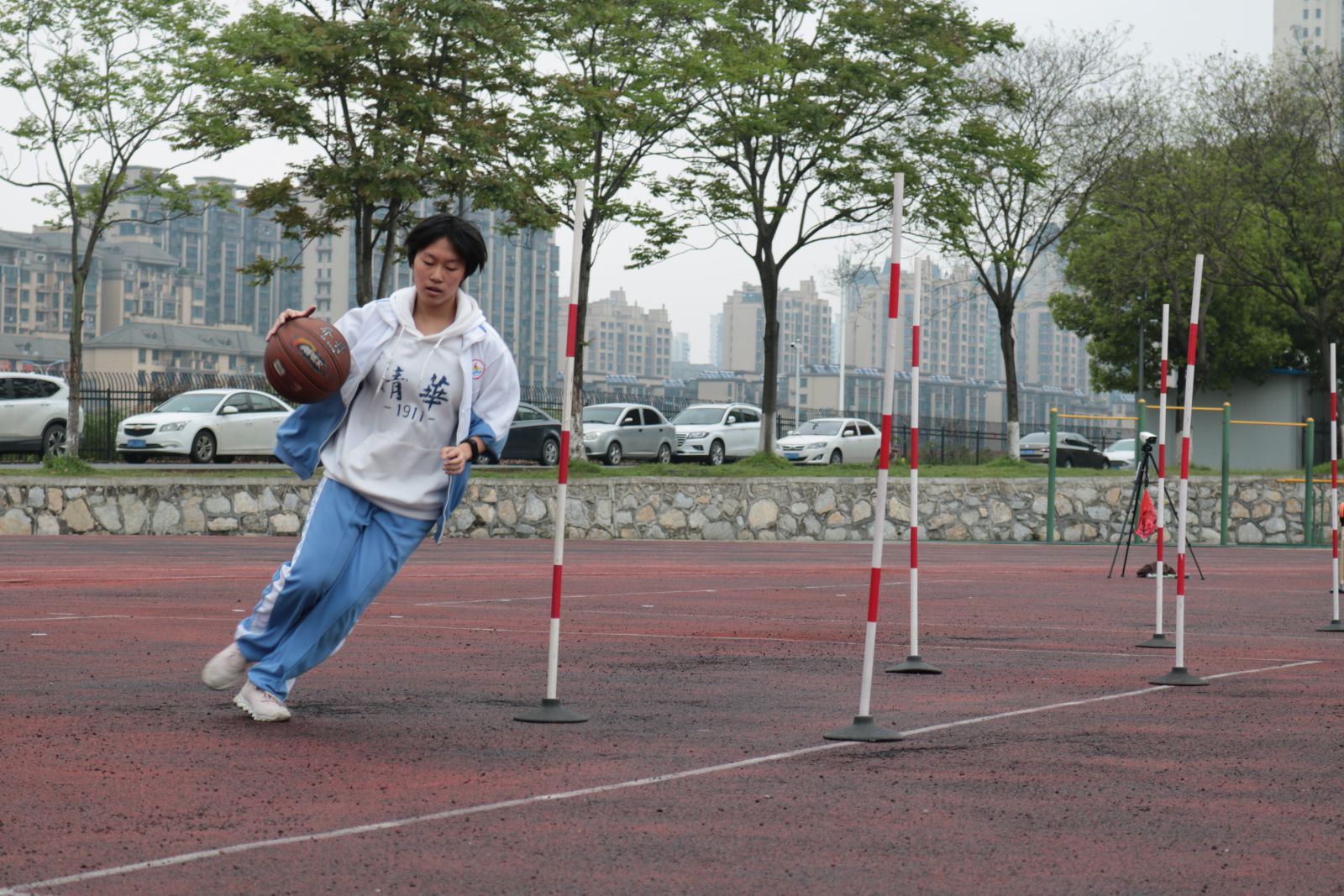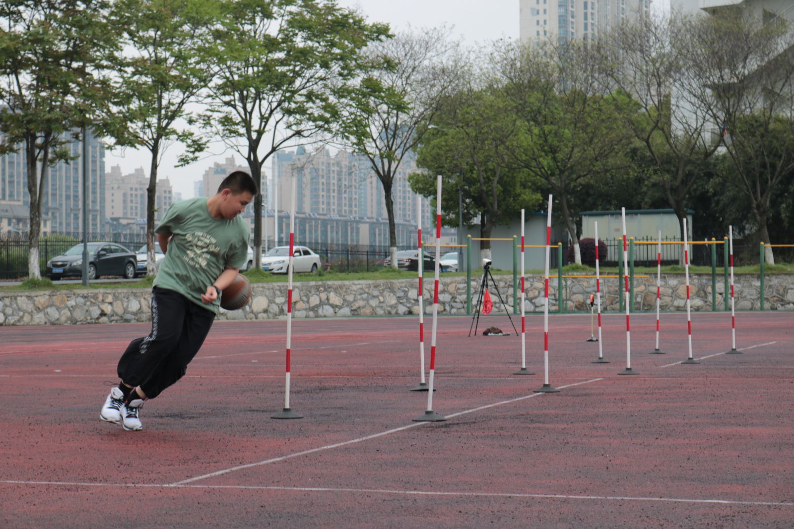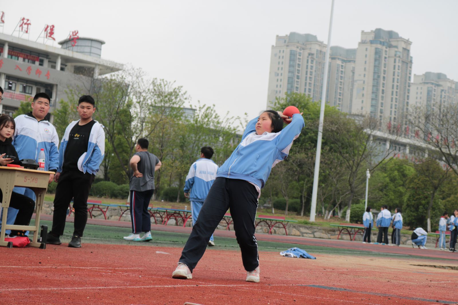 时间的车轮跨入了四月份,距离中考体育测试越来越近,为了让同学们熟悉考试程序、规则,积累应试经验,同时查找学生在体育训练中存在的问题与不足,为冲刺体育中考蓄势助力,4月12日下午,我校组织初三年级全体学生开展中考体育模拟测试。 初三年级组全体老师做了精心策划和充分准备。本次体育模拟测试严格按照市体育中考方案的标准,考试项目包括:篮球、足球、跳绳、立定跳远、实心球、坐位体前屈、男生1000米和女生800米等项目。测试期间,老师认真负责,级部主任和班主任全程陪同和鼓励,计分组的工作人员一丝不苟。在各个考试场地上,同学们精神抖擞、活力四射,以坚韧拼搏执着的精神进行着每一个项目。