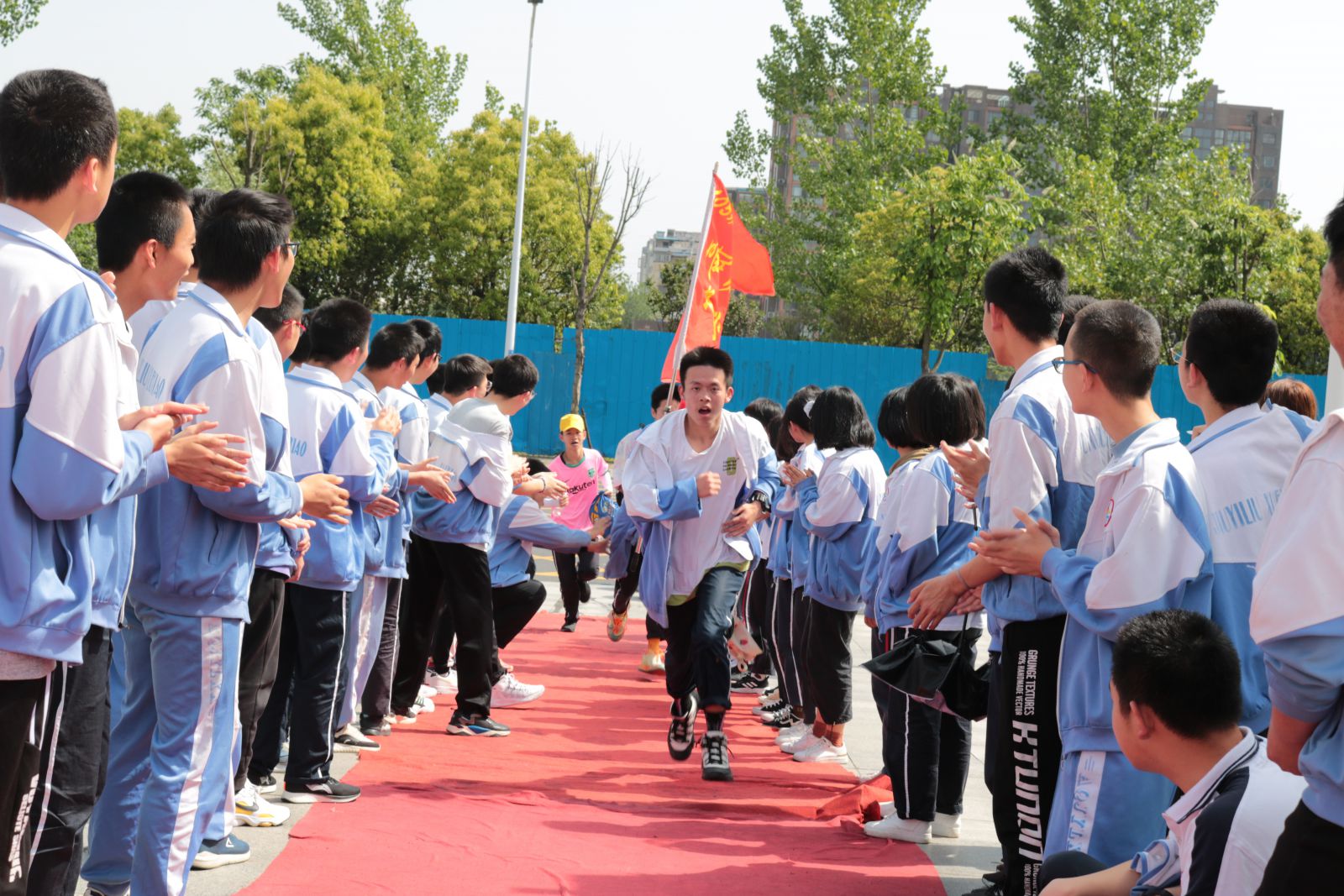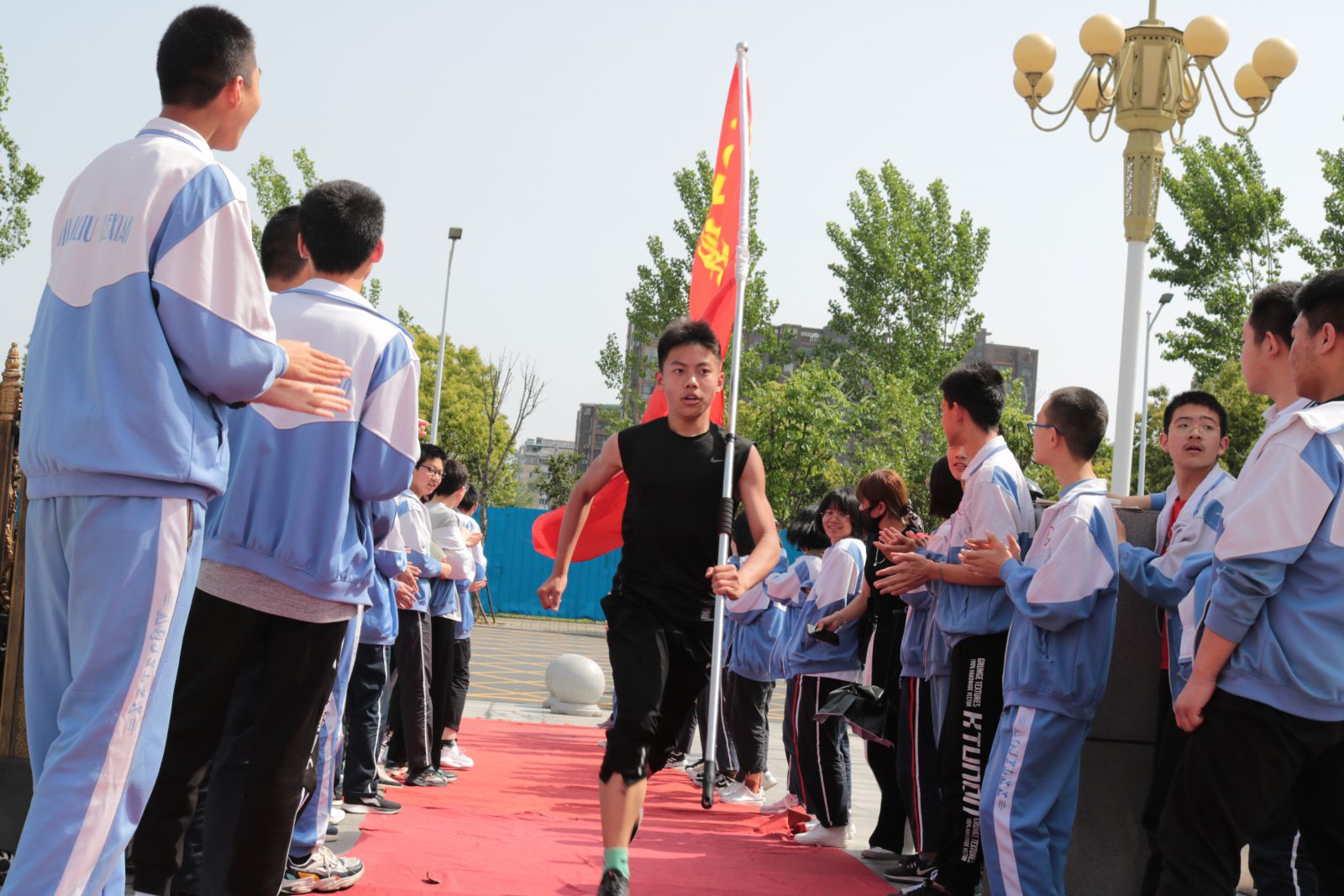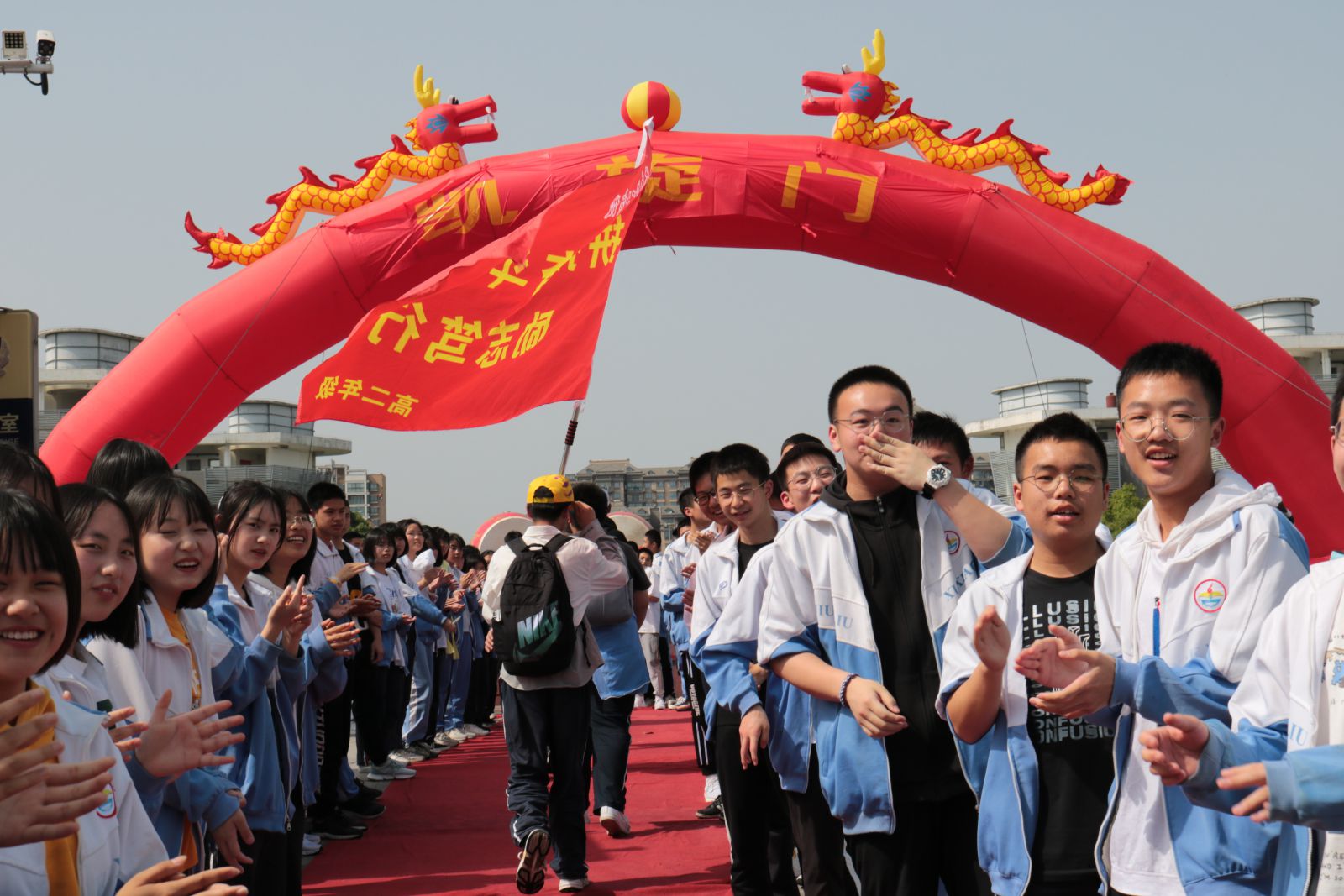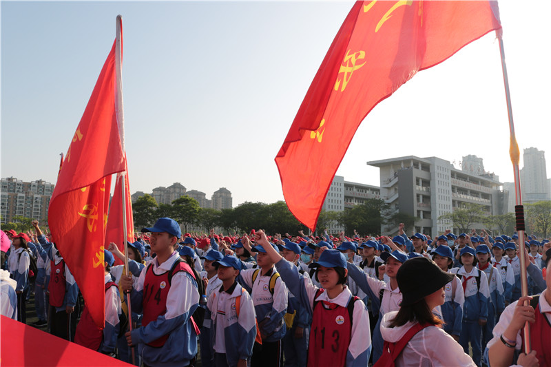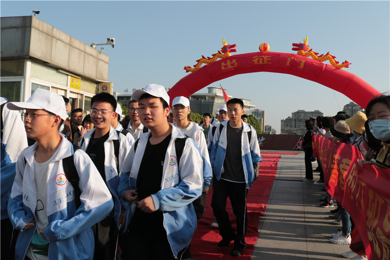 红旗招展,挥师开拔,励志远足,耀目起程。早上6:50,初一、初二、高一高二年级近3000名师生们齐聚学校的体育场举行出征仪式。怀着梦想和激情,带着满满的期待,伴着老师们出发前的激励和嘱咐,同学们迈着坚定的步伐,喊着嘹亮的口号,意气风发的走过出征门。