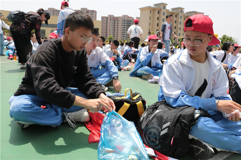 中午11点半,浩浩荡荡的队伍顺利抵达目的地。春夏之交,微风清凉,大家席地而坐,稍作休息调整。虽然身体满是疲惫,但精神却是昂扬的,享用完自助餐后,队伍踏上了归途。孩子们随身携带垃圾袋,老师和同学们一起把垃圾处理干净,确保所到之处不留一片垃圾,让本次活动真正做到绿色、环保。