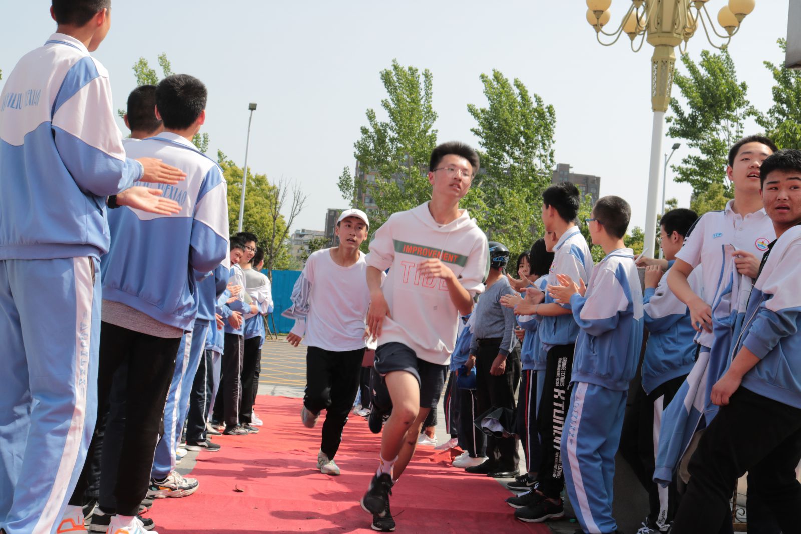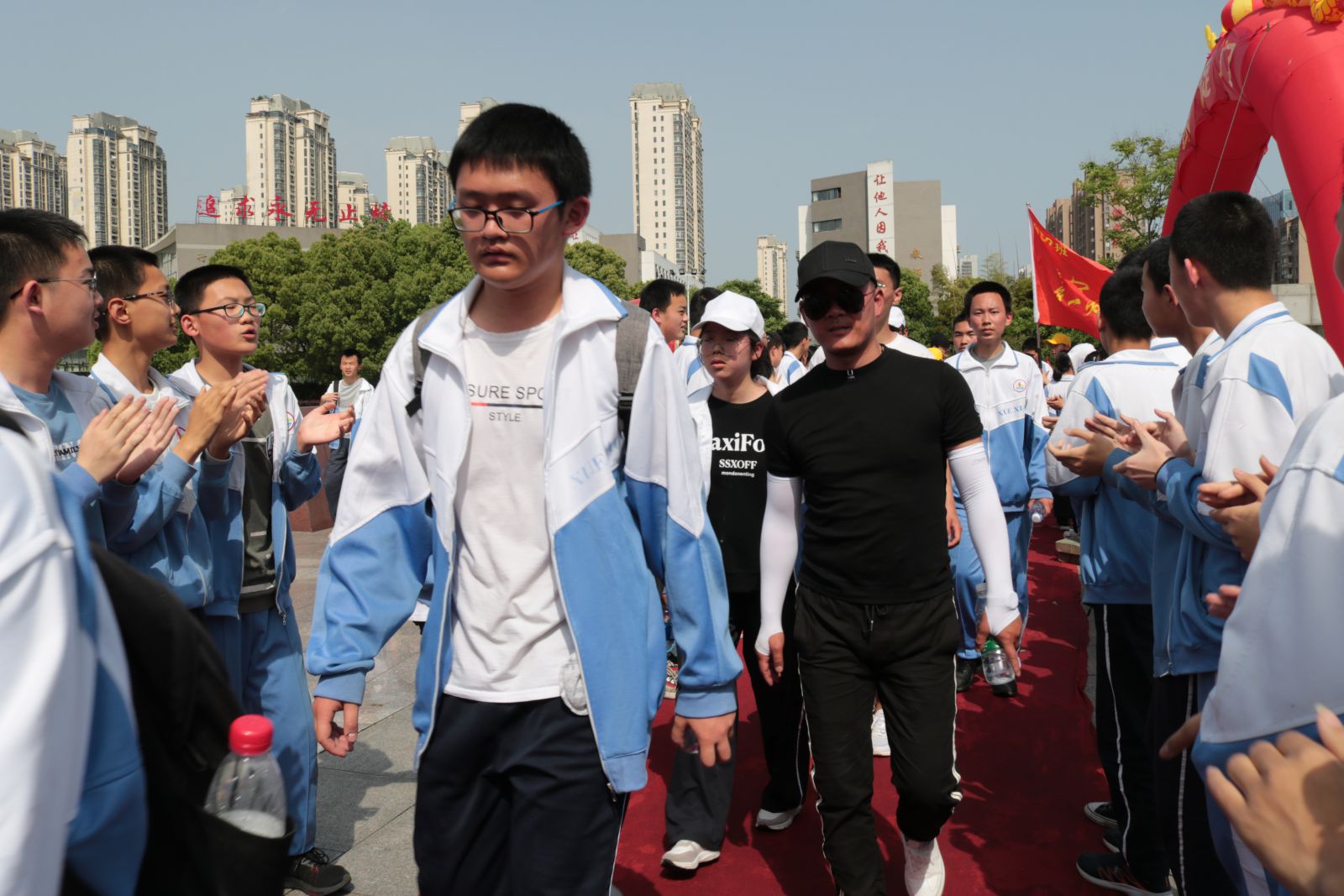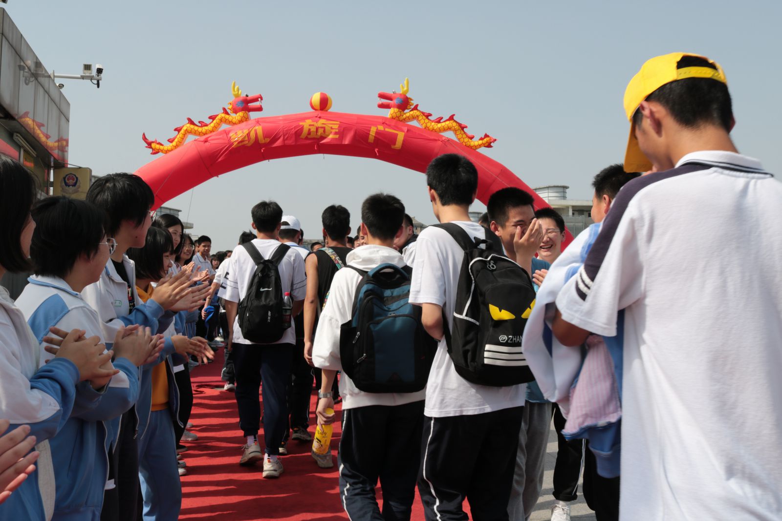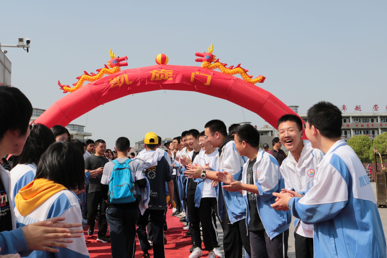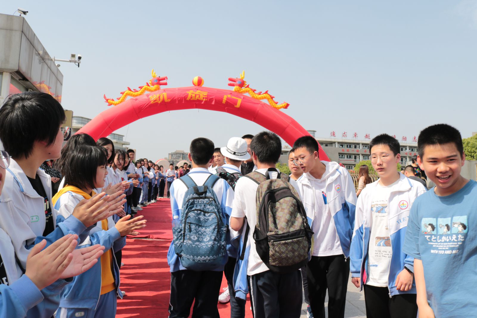 下午三点左右,远足队伍成功返回学校。凯旋门前锣鼓喧天,高三、初三的学哥学姐们夹道欢迎勇士们凯旋。同学们虽感身心俱疲,但脸上个个洋溢着兴奋的笑容,正如一个同学所说:虽然很累,但感受到了大自然的气息,挑战了自我,收获了成功的喜悦。