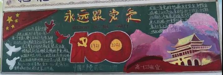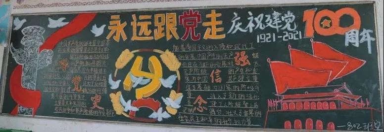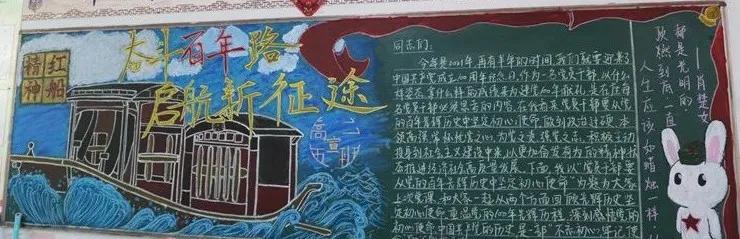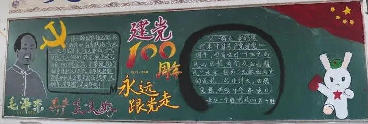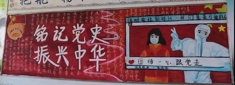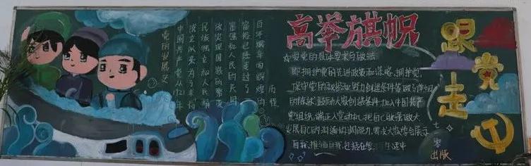 为庆祝中国共产党建党100周年,弘扬中华民族传统美德,进一步推进校园文化建设,加强对学生的爱党、爱国、爱社会主义教育,我校开展了“建党一百周年,永远跟党走”为主题的黑板报绘制活动。旨在通过黑板报对全体师生开展党史教育,引导广大学子继承革命传统、传承红色基因、弘扬革命精神,自觉将个人成长与祖国发展紧密结合起来,争做担当民族复兴大任的时代新人。 主题黑板报展示 各班级积极围绕主题,齐心协力,对黑板报进行精心设计,“内容丰富,图文并茂”是此次黑板报呈现的一大特点。一幅幅精美的作品,汇集了各班学生的集体智慧,也体现了对中国共产党的崇高敬意。 本次黑板报展评,作为一场生动的爱国主义教育,充分展示了同学们蓬勃向上的精神面貌,九一六学校将进一步培养学生关心党史,与祖国共奋进、与党同发展的时代精神,激发学生爱国爱党的热情,为建党100周年献礼!