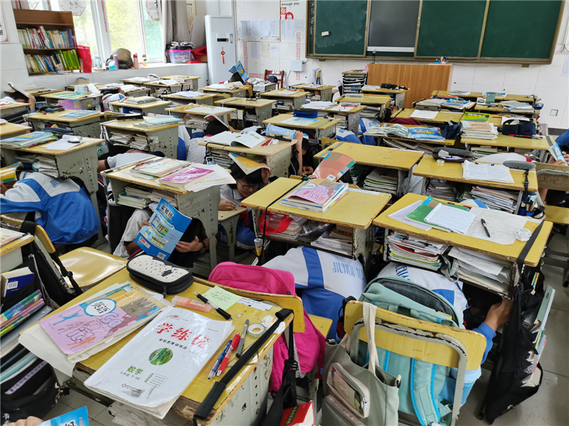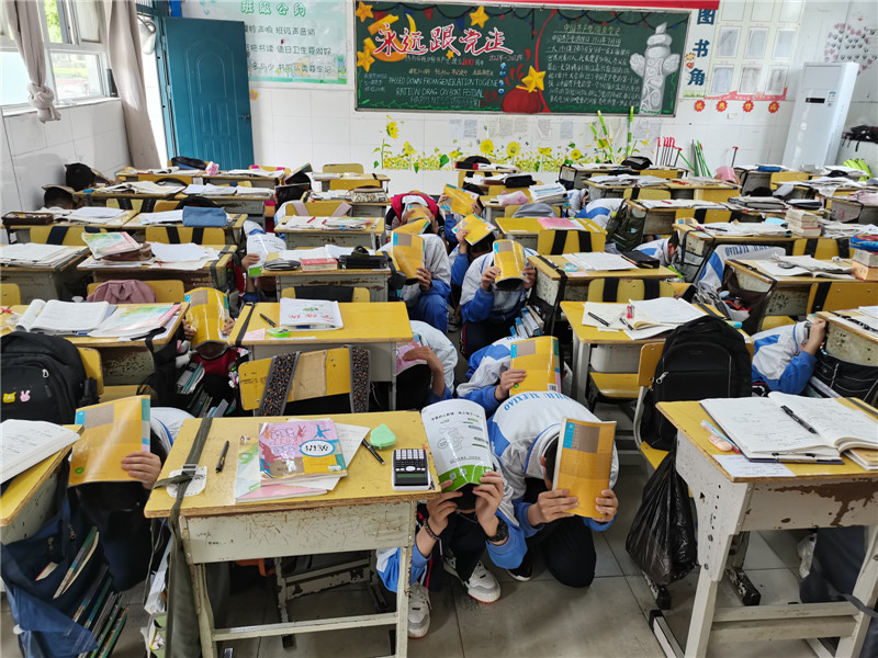 当校园广播警报第一次在校园里急促响起,师生应急疏散演练开始,各班班主任一起指导学生做好避震,孩子们迅速躲避在课桌椅下等安全的地方,用双手或书包等其他物品护住头部,各路口和楼梯口疏导人员迅速到位。待第二轮警报声响起,各班老师和各区域疏散人员立即组织学生按预定路线,快速有序地撤离到安全的地点,并及时清点各班人员情况。