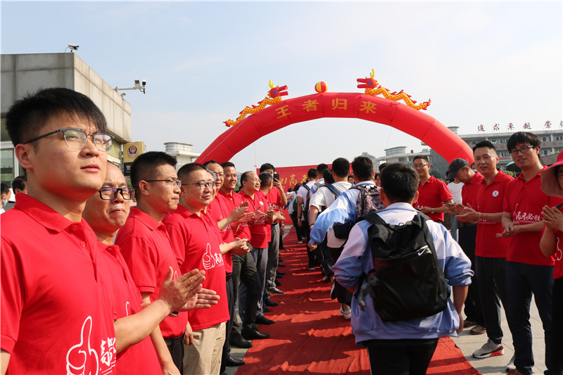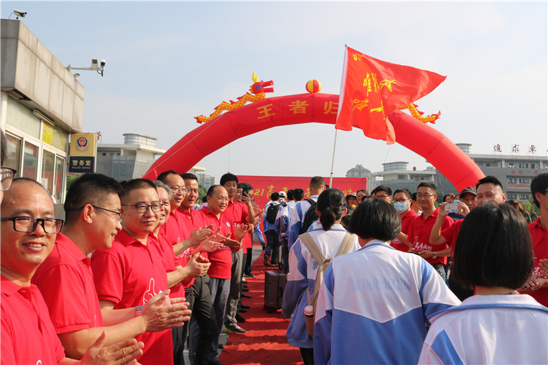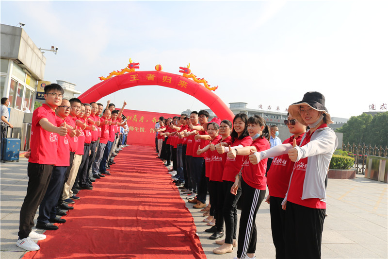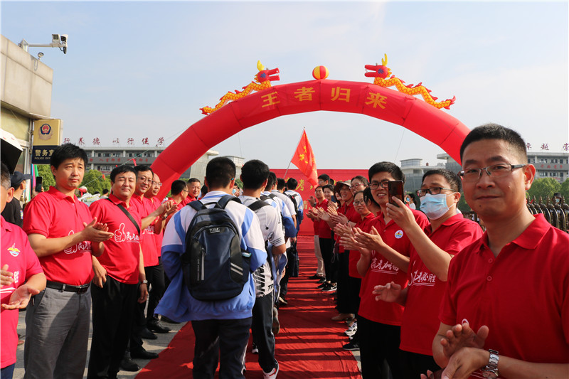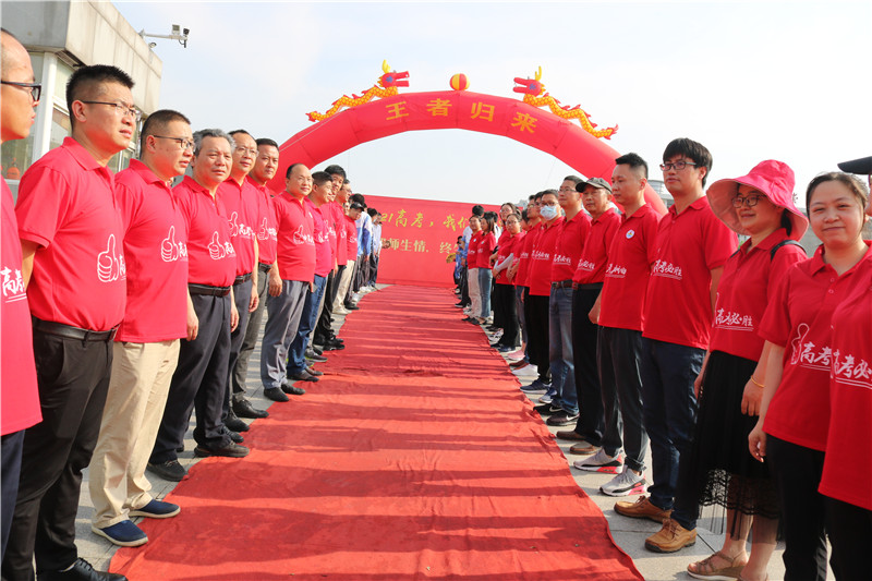 时间如白驹过隙,繁花盛开的五月已到下旬,六月款款而来。为了进一步鼓舞士气,增强备考信心,学校精心安排了一次特殊的欢迎仪式。 学校大门口铺下红地毯,鼓声震天撼地,高大的拱门巍然耸立,“王者归来”四个大字高悬于上,蕴意着九一六学校的高三学子们在2021年的高考中旗开得胜。学校领导及所有高三教师们着“高考必胜”文化衫,等待迎接高三勇士归来。