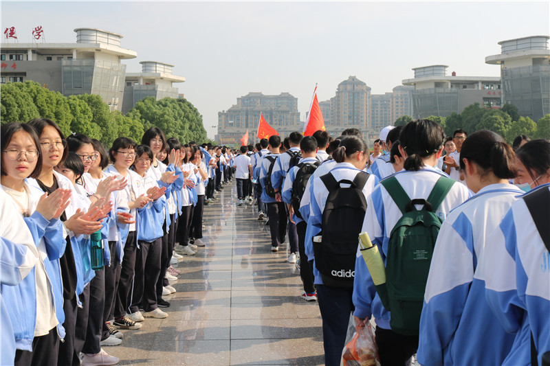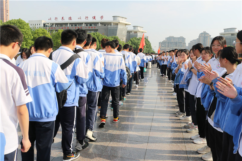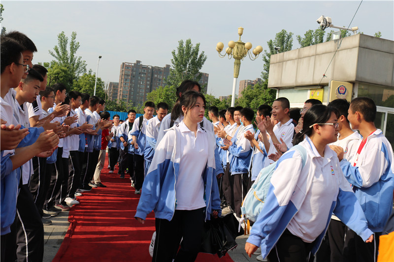 高一高二的学生列出一条王者通道,用自己的掌声、欢呼声、呐喊声为高三勇士送上自己的祝福,祝愿他们在高考中能披荆斩棘,乘风破浪,勇创佳绩,金榜题名。
