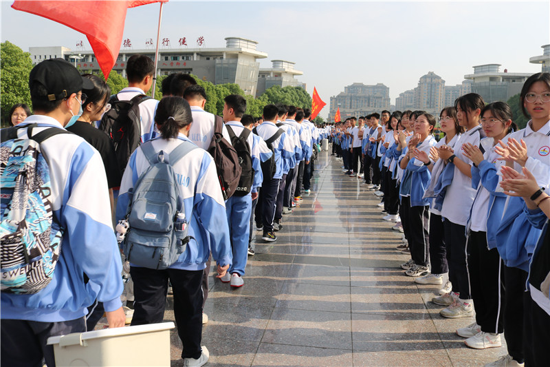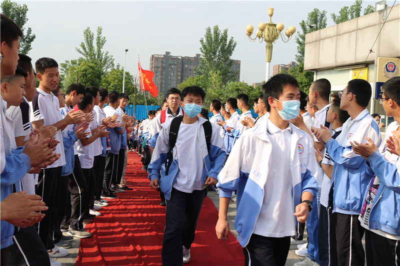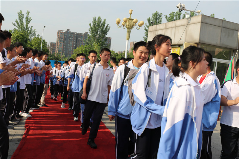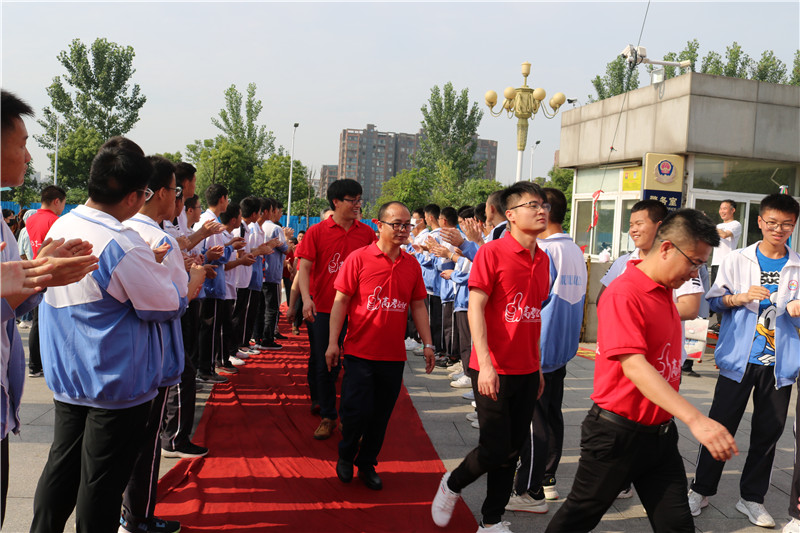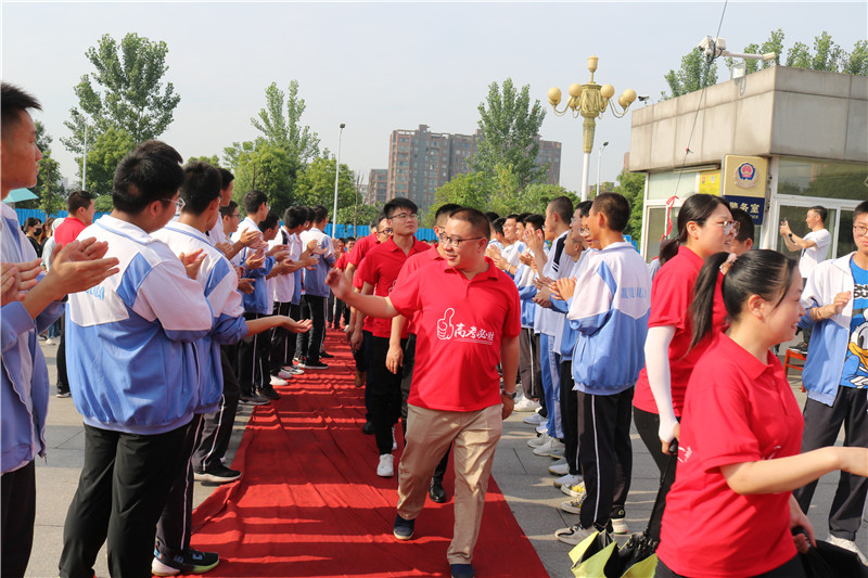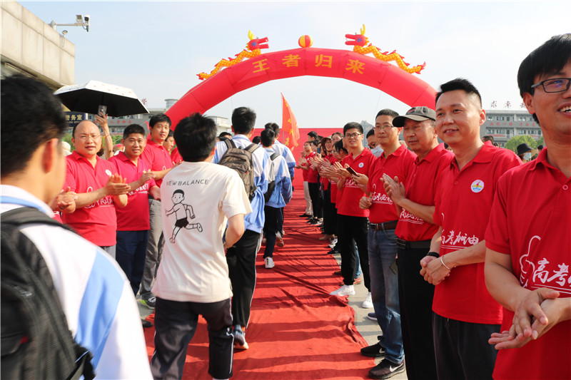 高三的同学们一个个精神抖擞,意气风发。在全体老师的深情注目和挥手致意下,他们昂首阔步地走上红毯,走进日夜奋战的校园,兴奋地与欢迎的老师们挥手。老师们也纷纷用激励人心的话语来表达他们对同学们的殷殷期望,每一句“加油”、每一次击掌都是来自学校和老师们的真诚问候与鼓励。