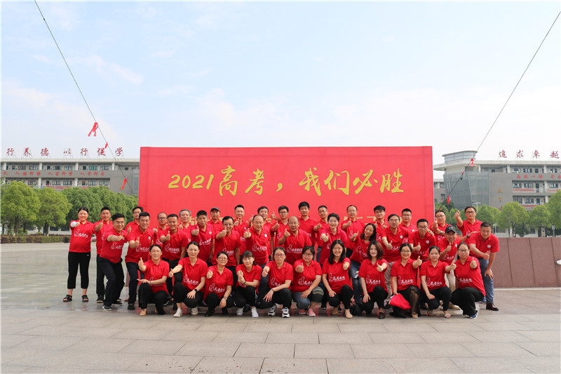今天,所有高三的老师们统一穿着红色T恤,T恤前面是“高考必胜”四个大字,用无声的语言为我们的高三学子默默加油;T恤背后是“和你在一起”,表示老师们和高三学子们心连心,在高考结束前最后这段时光全力支持、全心陪伴。