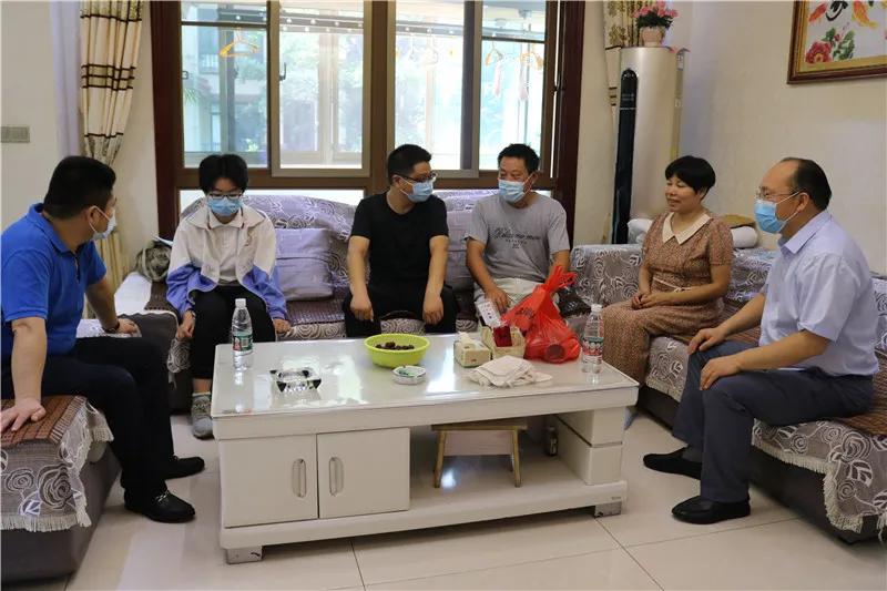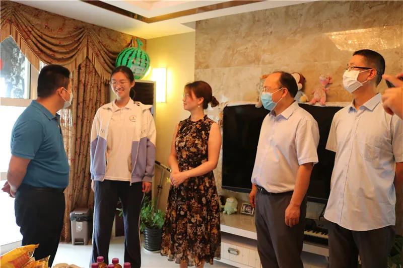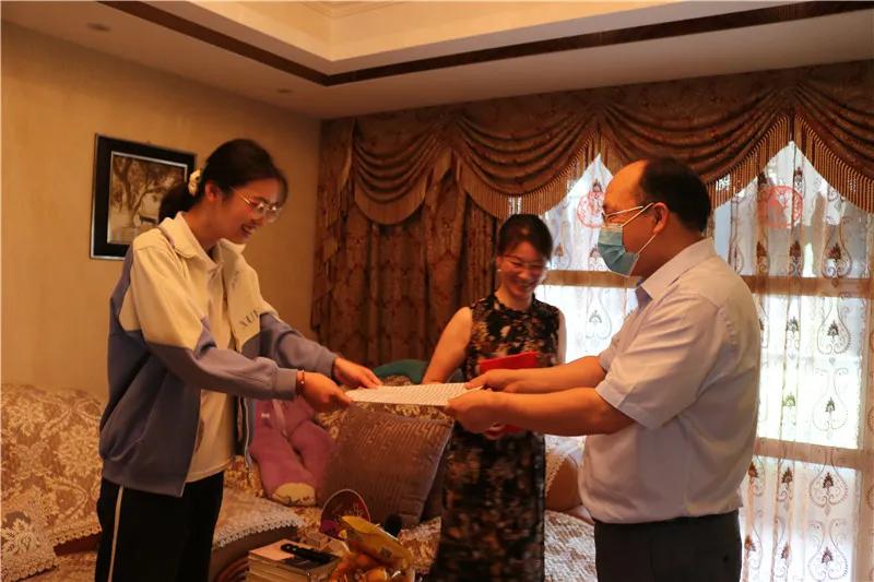 在市高考文科状元王宁家中,程董事长向王宁及其家人表示祝贺,并深切的勉励王宁同学:上大学后,一定要志存高远,不断努力,在求学和工作的道路上把握正确的人生方向,走得更远,飞得更高,同时一定要懂得感恩,感恩亲人、感恩母校、感恩社会、感恩祖国,将来为国家和社会发展贡献力量。随后,程董事长和何校长向王宁送上奖助学金10万元。