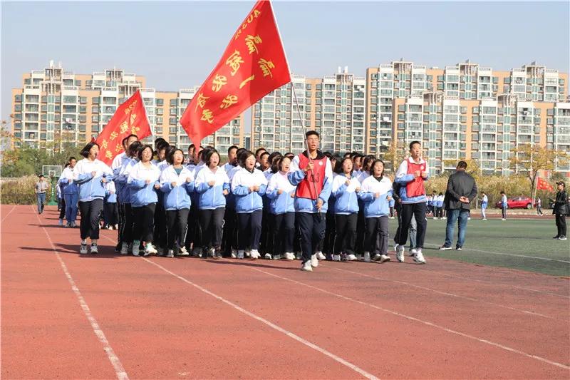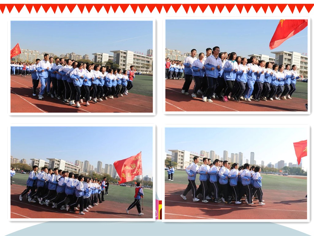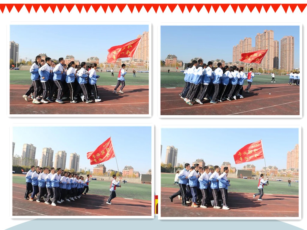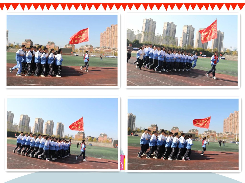 “一、二、三、四……”随着跑操口号响起,激情跑操比赛正式开始。操场上班旗飘扬,士气高涨,响亮的口号声回荡在整个校园。