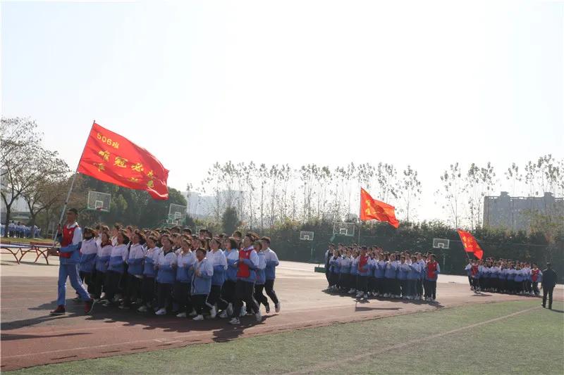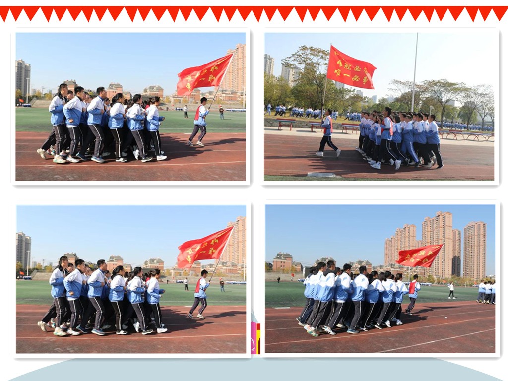 比赛过程中,在手持班旗同学的带领下,各班同学队伍整齐、精神饱满、动作规范、口号响亮,充分展现了九一六学子朝气蓬勃的精神风貌。