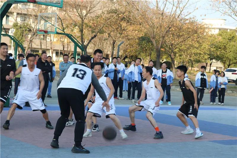 比赛中,队员精神抖擞、全力投入,抢断、突破、跳投、远投、盖帽,双方队员你攻我守,队员们不时上演精彩的配合。赛场上,球员们矫健的身姿,引来学生们的欢呼和加油。他们一次次精准的远投更是引来场外阵阵呐喊欢呼,默契的配合和合作以出色的个人和团队能力展现风采,每支队伍都表现得精彩万分。老师们的参与也给同学们起到了榜样的作用,体育锻炼,师生共同参与。