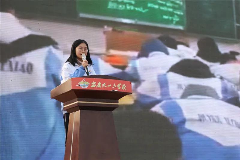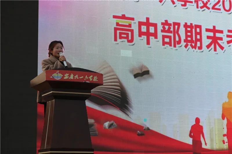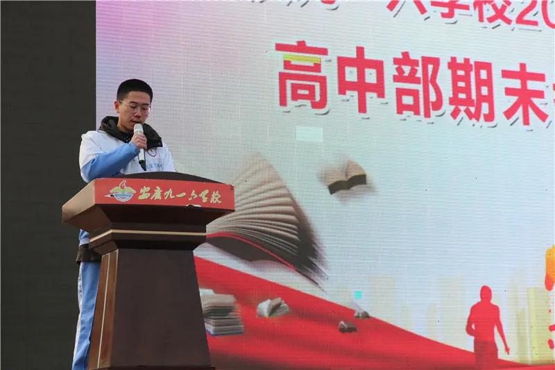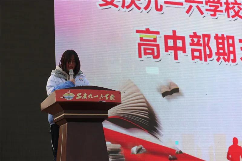 会上,为进一步营造良好的复习备考氛围,高中部把近期学生在校的行为表现的通过视频向全体师生展示。随后,各年级学生代表依次上台发言谈感想。他们面对期末,纷纷表态:全力以赴,用勤奋诠释九一六学子的人生追求,用诚实证明优秀少年的良好品德,用拼搏精神和务实态度书写自己的青春年华。