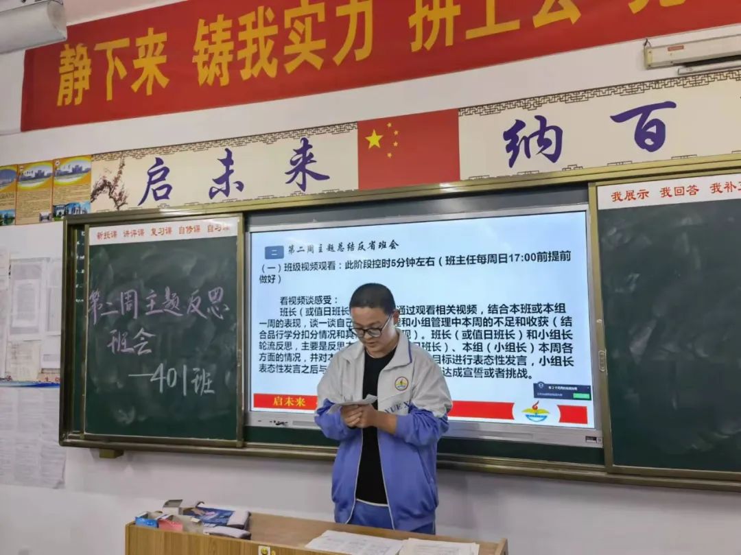 为更好地总结近阶段学习和生活中的表现情况,让学生学会自我反思、自我调整,培养自律自强的优秀品质。周日晚,学校初高中各班级组织开展了反思主题班会课活动。