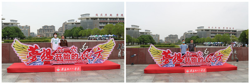 在校园南门入口处,学校精心准备彩虹门、红地毯、签名墙和留影台,满满的仪式感饱含了学校对每一位学子的祝愿和祝福:愿你们乘着梦想的翅膀,从这里腾飞。新生和家长们纷纷驻足留影,记录下珍贵美好的瞬间。