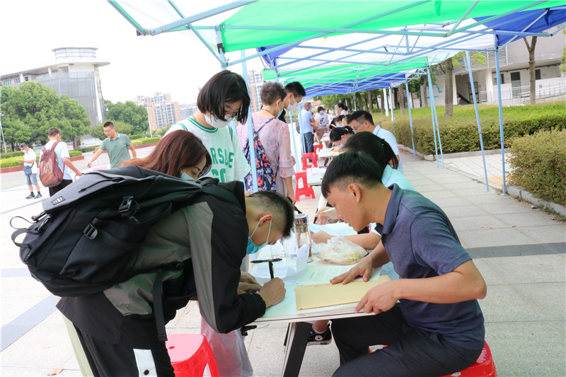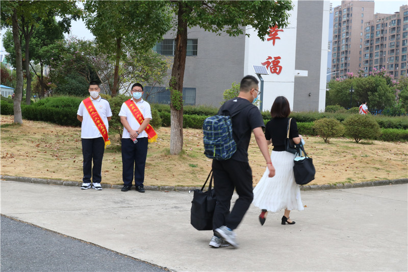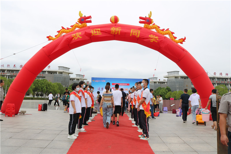 入学当天,学校领导、班主任和学生志愿者等工作人员早早地来到校门口,以饱满的精神状态等待着新生入校,接待处每位班主任面带笑容地迎接新生的到来,细致负责地为新生办理入学手续。校园随处可见学生志愿者可爱的身影,他们热心地引导、帮助学弟学妹。