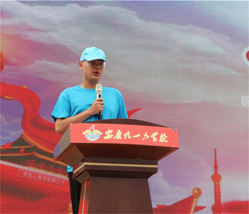 高一学员代表新生张壮发言,他代表全体学员承诺:在夏令营活动中严格要求自己,听从指挥,勇敢接受考验,团结协作,交出圆满的答卷。