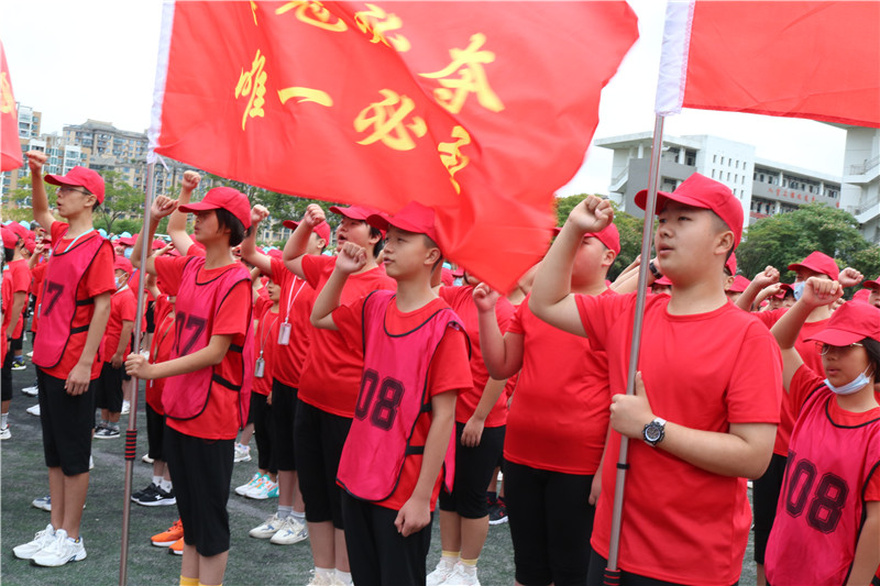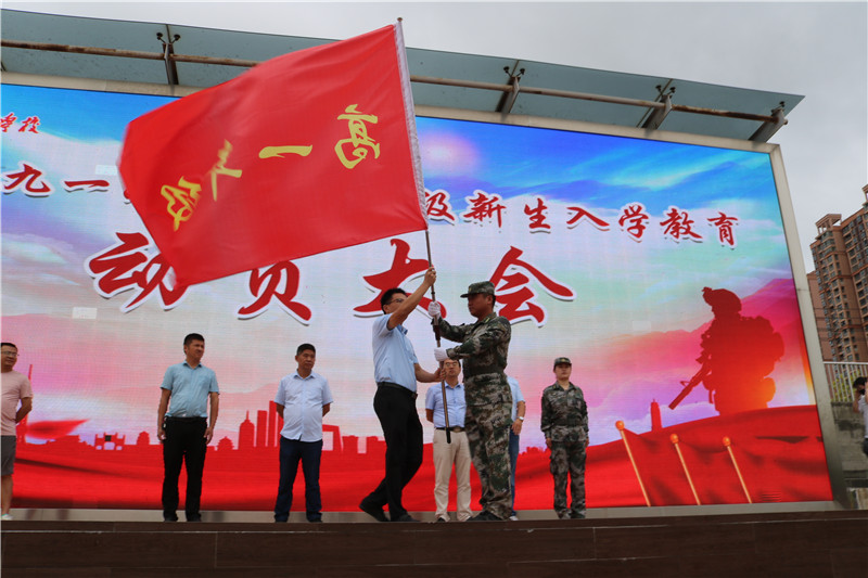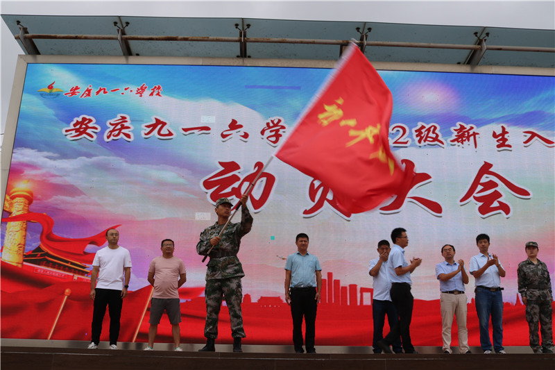 仪式最后,杨校长为初高一新生授旗,并宣布安庆九一六学校2022级新生夏令营活动正式开营。
