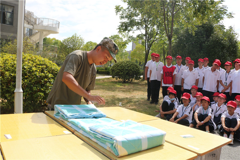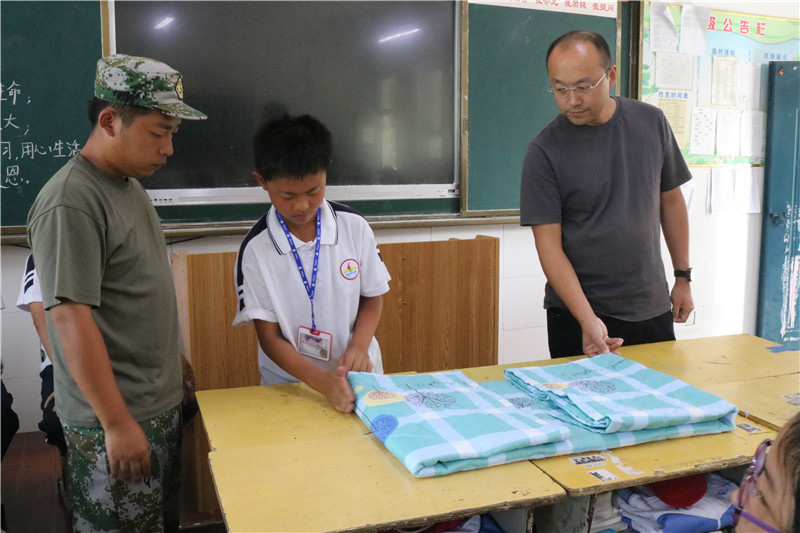 教室里,是班主任在耳边的细声细语,指导同学们学习整理内务;是指导员亲身示范的身影,传授同学们叠出豆腐块被褥的方法。同学们认真地观察指导员示范,在一旁反复练习。