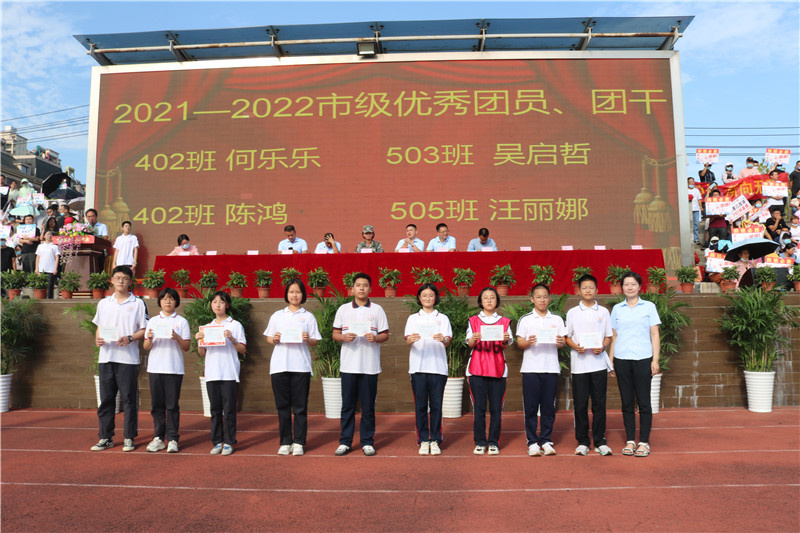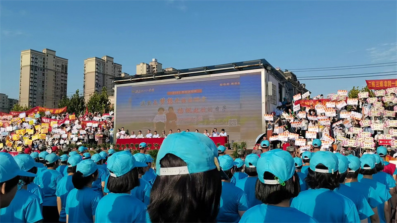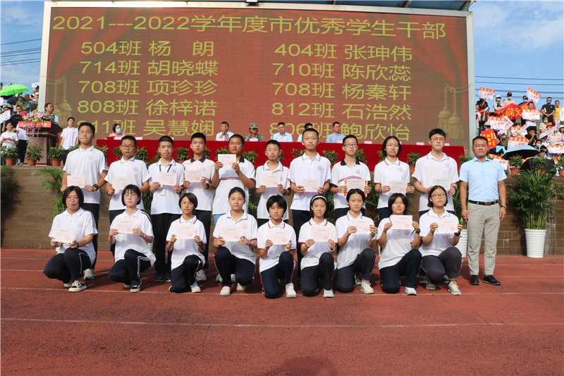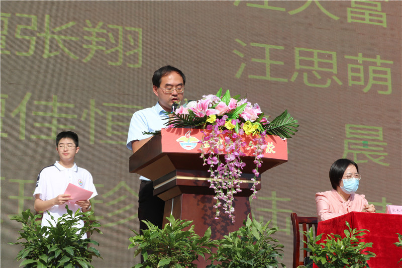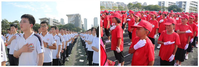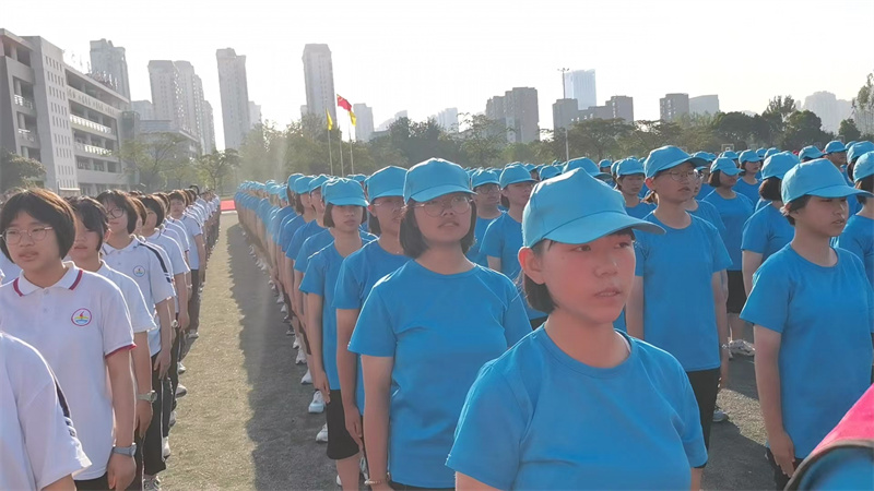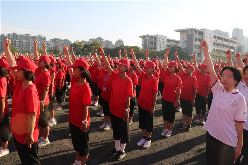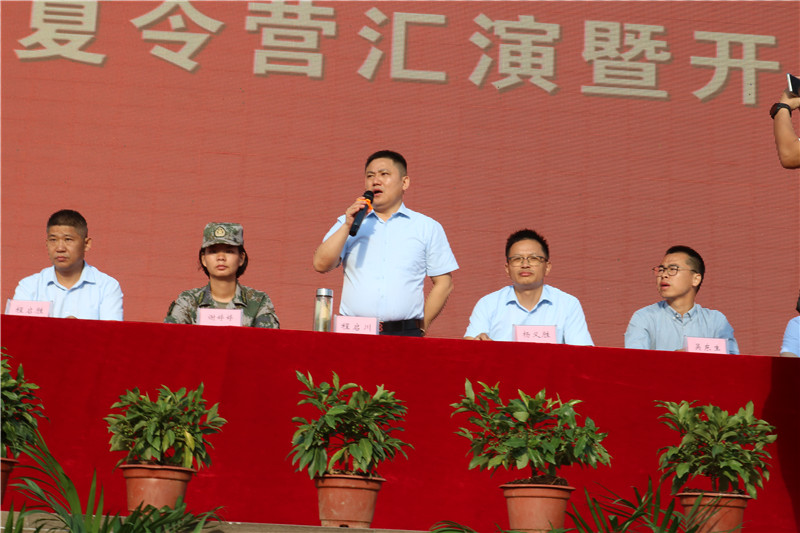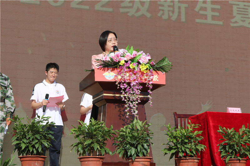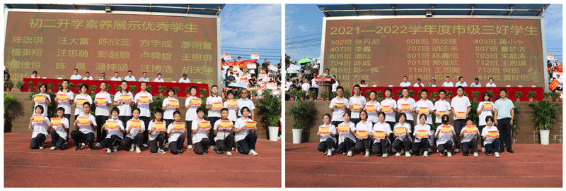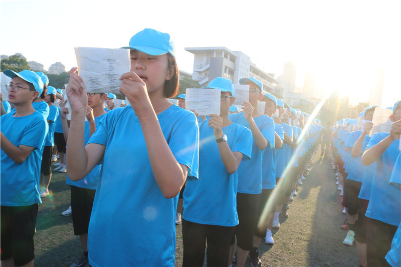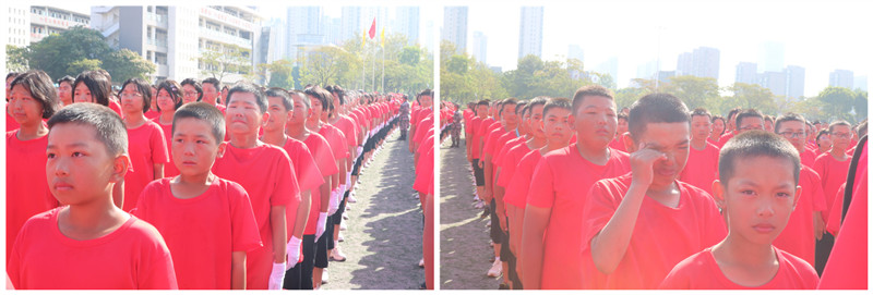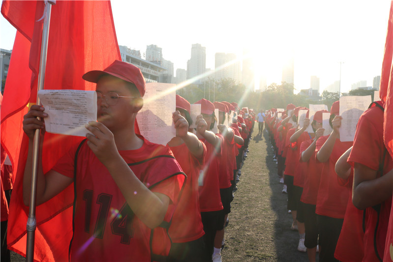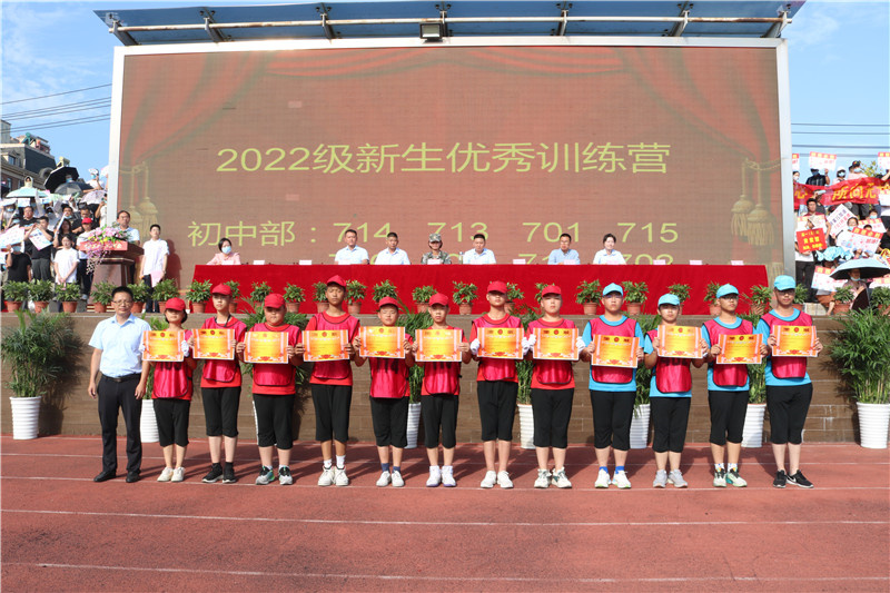 白驹过隙的时光像一条潺潺的小河,转眼夏令营就已到了尾声。9月7日上午7点,安庆九一六学校2022级新生夏令营汇演暨开学典礼在学校操场隆重举行。启川教育集团董事长程启川及学校领导、全体师生和新生家长共同见证这一盛况。 新生家长为孩子们加油助威 操场上,全体学生列队集合,进行操前小读状态。他们站姿标准,持书整齐规范,昂首挺胸,声音洪亮,读书声传遍操场的每个角落。 汇演在庄严的国歌声中拉开帷幕。鲜艳的五星红旗在护卫队手中冉冉升起,全体师生庄严肃穆,面向国旗,行注目礼。 紧接着同学们铿锵有力地齐喊《经典口号》,齐声宣誓《我是一个这样的人》,声音慷慨激昂、振奋人心。 齐唱《跪羊图》 启川教育集团董事长程启川先生宣布新生夏令营汇演正式开始 新生们身姿挺拔以最昂扬的姿态和最饱满的精神接受检阅。伴随着指导员铿锵有力的口令声,各班方队分别开始进行成果展示。 蹲姿表演 跑操表演 形体拳表演 坐姿表演 同学们的表演展现出他们艰苦奋斗,团结协作的精神面貌,赢得了现场领导、老师和家长们的阵阵掌声。 新生代表高一年级余钏雨同学发言。 初一年级施然家长代表发言。 开学典礼 随后,在开学典礼上举行表彰仪式,学校董事长及校领导为上学年表现突出的先进集体和优秀个人颁奖。 董事长程启川先生为获奖先进班集体颁奖 学校校长杨校长为优秀训练营颁奖 学校副校长程校长为获奖同学颁奖 学校副校长王校长为获奖同学颁奖 学校副校长吴校长为获奖同学颁奖 学校副校长徐校长宣读先进个人和集体名单 杨校长作新学年开学致辞。他向连日来付出汗水与辛劳的全体指导员和陪伴你们成长的各位老师致以诚挚的谢意!向全体同学表示热烈的祝贺。 新学年,他勉励同学们:用归零的姿态克服浮躁之心,用砥砺的姿态保持进取之心,用奋发的姿态激发内在潜能,去面对今天的学习与生活,去面对成长的迷茫与困惑。同时,杨校长对全体老师提出要求:全体老师要修身不止、修心不止,用崇高的师德之光去照亮学生理想前程,让他们学会求知、学会生存、学会感恩、学会做人。 《感恩的心》手语表演 欢送承训老师 欢送仪式上,大屏幕播放着教导员与学生们这些天训练的点点滴滴。随着一声令下,各班教导员为每位学生脱帽敬礼,八天以来的收获和感动都融入成了学生们眼中的那一滴泪。 学生手捧鲜花欢送教导员 奋斗的汗水刚刚拭去,回首过去的八天夏令营生活,虽然苦与累,却是值得珍藏一生的珍贵财富。希望同学们把夏令营中收获到的艰苦奋斗和团结向上的品质在今后的学习中发扬光大! 携手今日,高歌这一路的荣耀感动;展望明朝,让我们携手同行!