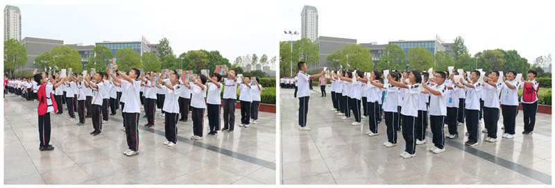 比赛前,各班队列整齐,精神抖擞地在广场集合,他们信心满满,整装待发。伴随着抑扬顿挫的读书声,各班方队依次开始了展示。操前小读,同学们站姿标准,持书规范统一,声音洪亮。让评委老师们看到了同学们朝气蓬勃、积极向上的精神风貌。