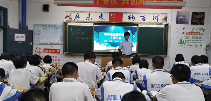“投我以桃,报之以李”。感恩是对别人所给的帮助表示感激 ,是对他人帮助的回报。为了让学生懂得感恩,学会感恩,培养学生心怀感恩,孝心向善的优良品格。九月,我校开展了系列感恩德育微行动。 本月德育主题为“感恩是最美的品格”。学校开展了“让我们都有一颗感恩的心”主题班会;以“感恩教育”为主题的国旗下讲话;学唱两首感恩歌曲;制作感恩母亲的贺卡等活动。 升旗仪式上,801班的郑雅欣同学做了以感恩为主题的国旗下讲话。她用朴实、真挚的话语倡议大家要学会感恩,心怀感恩。 德育处主任李主任在升旗仪式上强调了感恩主题教育的内容,并对全体同学提出了具体要求。 主题班会上,老师们通过视频、图片等形式,让学生感受母爱和父爱,体会父母的辛苦与劳累,从而培养他们的感恩之心。学会感恩父母、感恩老师、感恩同学,在学生心中埋下感恩的种子。 学唱两首感恩歌曲《跪羊图》和《感恩的心》 “感恩的心,感谢有你。伴我一生,让我有勇气做我自己。感恩的心,感谢命运。花开花落,我一样会珍惜…”“父母恩德重如山,知恩报恩不忘本。做人饮水要思源,才不愧对父母恩。人间孝道及时莫迟疑,一朝羽丰反哺莫遗弃…”歌曲教化世人知感恩行孝道,希望九一六学子们能像歌词中唱的那样,懂得感恩,报答父母,做一个心怀感恩的人。 母亲是生日的主角 羊有跪乳之恩,鸦有反哺之义。感恩尽孝,自古以来都是中华民族传统美德,更是做人的基本标准。十多年前的某一天,你的母亲拼尽全力把你带到这个世界上。孩的生日,娘的难日,当你沉浸在生日的喜悦里,请别忘记今天也是感恩母亲的纪念日。在自己生日这天,让母亲成为主角,尊崇她,感谢她,以报答母亲的恩惠。 纸短情长 见字如晤 以一次行动践行养育之恩,以一纸书信传递感恩之念。给父母写一封感谢信,表达自己的感恩,感谢。平日里羞于口头方式表达的话语,用笔尖的真情、纸墨的浓意来传达。升旗仪式上学校开展了以“母亲是生日的主角”主题德育活动。 高二(2)班的王静同学在升旗仪式上做了《母亲是生日的主角》演讲,句句深情肺腑,让同学们明白母亲十月怀胎的艰辛,学会为母亲做些力所能及的小事,用行动去感恩母亲。 高二年级主任余主任在主题升旗仪式上讲话,他希望通过此次活动加深大家孝敬父母的意识,更加懂得生日的意义和父母的付出。 草感地恩,方得其葱郁; 花感雨恩,方得其艳丽; 己感彼恩,方得其壮大。 感恩使人成长,从感恩别人的奉献中去体验和学习做人之道,处世之道。知恩,感恩,谢恩,才会成长,才能使我们的生命更加完整。常怀感恩之心,感恩所有的相遇和陪伴,生活中遇见美好是幸运,遇见不好却能教会你成长,事过无悔,不负遇见。