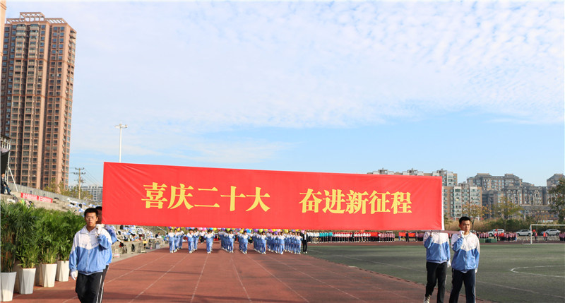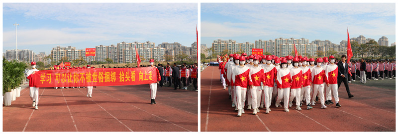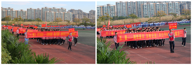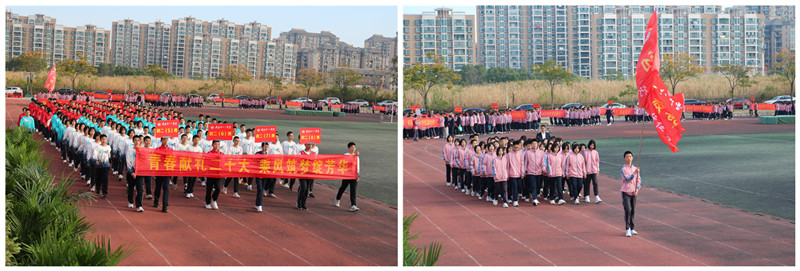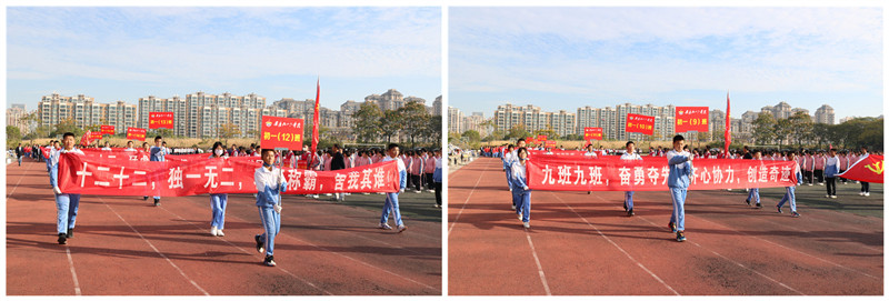 一群有着青春活力,具有凝聚力和战斗力的班集体,喊着嘹亮的口号,迎着和风,迎着朝阳,自信满满地朝主席台走来。他们向所有人展示着团结拼搏、昂扬向上的青春活力。他们将用拼搏的汗水挥洒赛场,用晶莹的泪水拥抱成功的辉煌。