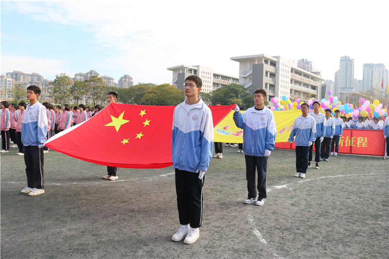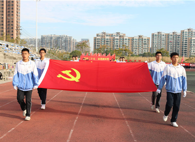 伴随着激昂的运动员进行曲,最先走来的是党旗方阵的同学们,紧跟着的是国旗、校旗和本届运动会会旗方阵。他们眼神坚定,步伐整齐,党旗、国旗、校旗以及会旗在他们手中庄严而又神圣。他们托起的不仅是一种责任,更是一种信仰。