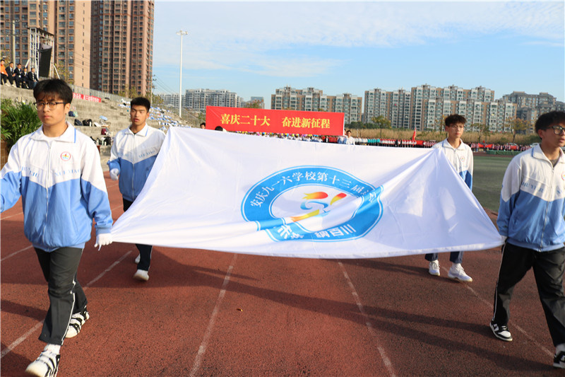 各年级方阵迈着矫健的步伐,斗志昂扬,靓丽登场。他们挥舞着手中鲜艳的旗帜,为运动场上添上一笔绚丽的色彩。通过展牌、条幅标语、挥旗列队表演、唱歌舞蹈、朗诵等多种形式,展示出九一六学校团结拼搏,奋发向上的班级风貌。