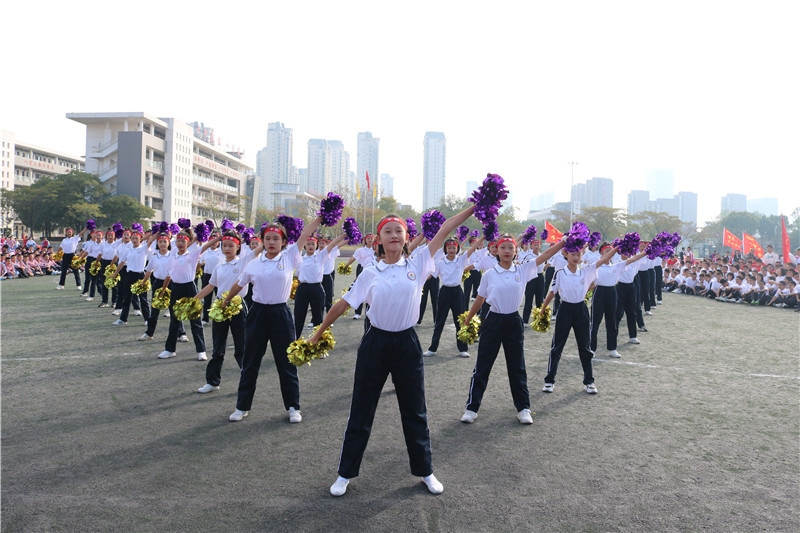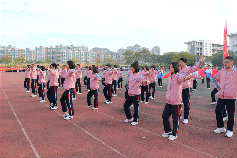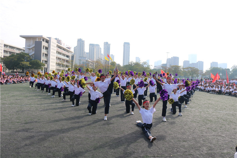 在活泼欢快的音乐声中,初一女子团体节目表演的同学们带着灿烂的笑容,用曼妙的舞姿,青春的活力,如同一团炽热燃烧的火焰,点燃了全场的气氛,将开幕式的气氛推向高潮。