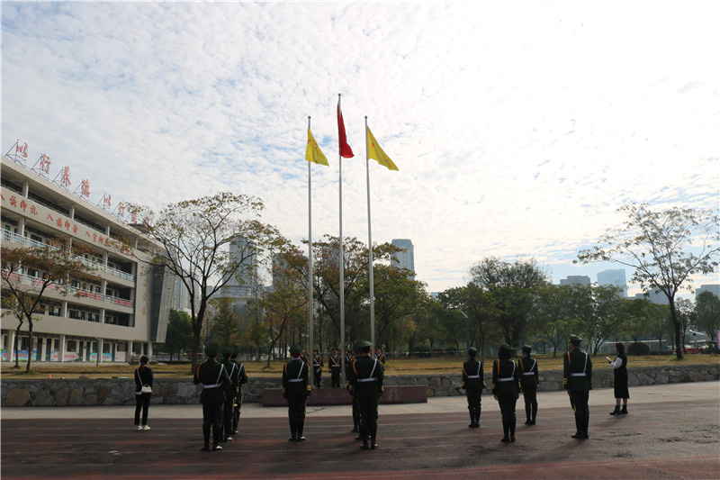 所有方阵入场后,举行升旗仪式,在庄严雄伟的国歌声中,全体师生注视着鲜艳的五星红旗在运动场冉冉升起。