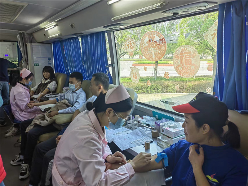 献血现场,老师们有序排队,填表、登记、检测、等待、抽血、休息,在工作人员的指引下,献血过程井然有序。