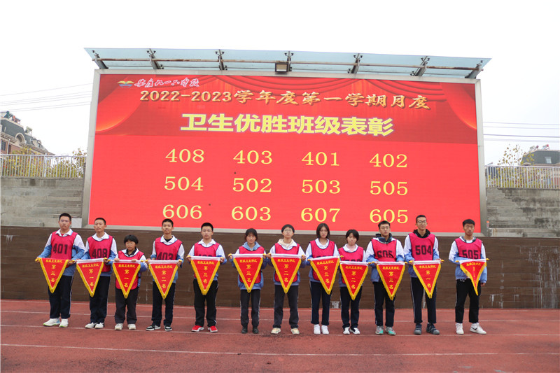 本次表彰大会对荣获年级总分优秀奖、年级单科状元奖、“校级之星”、“文明之星”、“勤奋之星”、“进步之星”、“节俭之星”等荣誉称号的先进个人和荣获班风优胜班集体、卫生优胜班集体、激情优胜班集体、安静优胜班集体、跑操优胜班集体、家校互动优胜班集体等荣誉称号的先进班集体进行了颁奖。