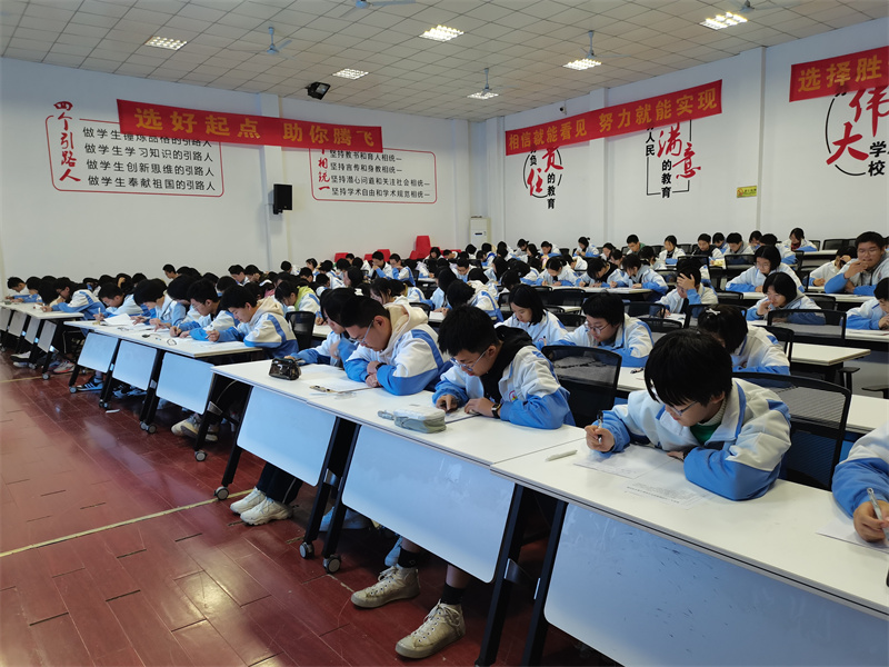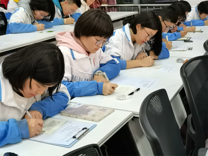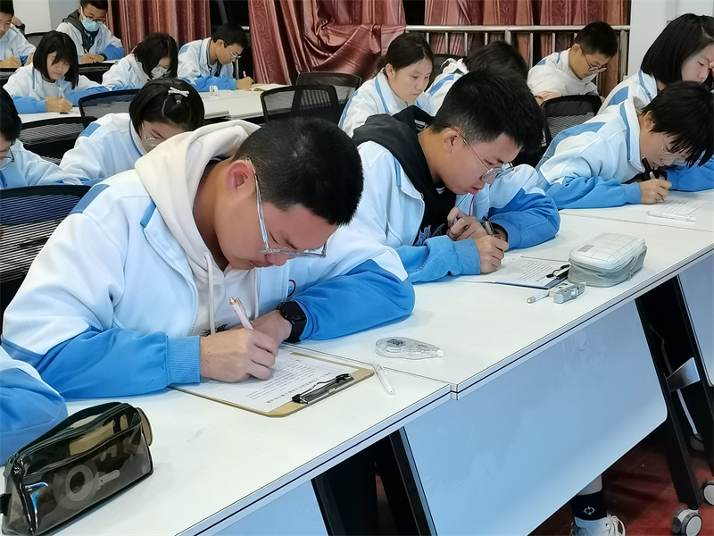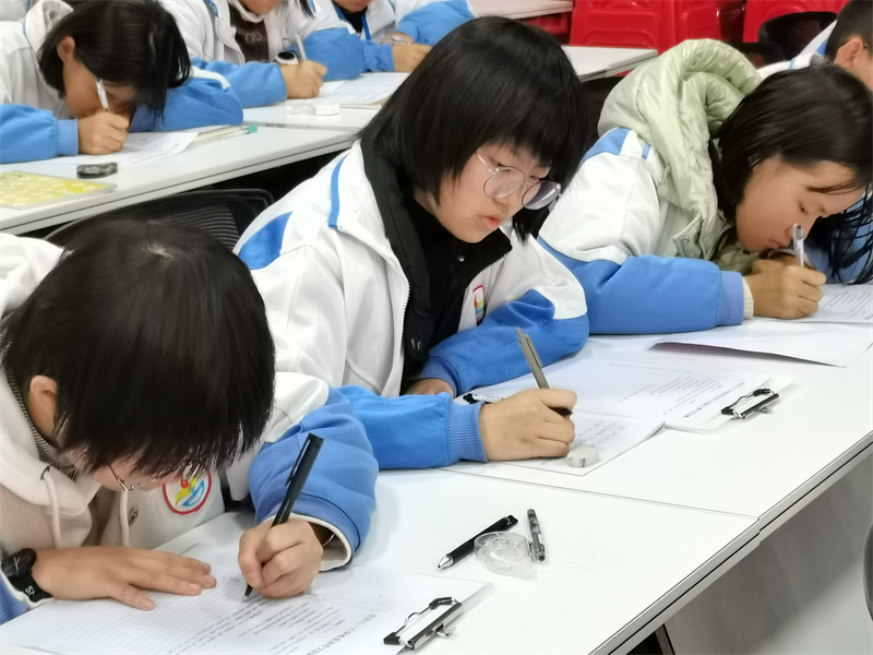 现场作文大赛,它不仅表现学生们的写作创新能力,更能体现年轻人的家国情怀。大赛中,同学们才思横溢、运笔如椽,充分展示了自己的写作才华。他们一丝不苟地奋笔疾书的模样,是学生最美的姿态。