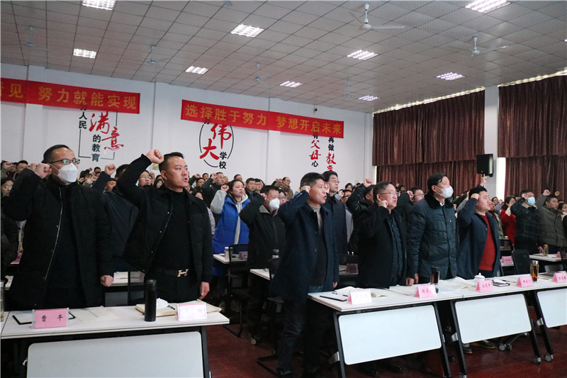 宣誓环节,全体教师肃立,举起右拳,庄严宣誓:“我庄严宣誓,立志做一名光荣的人民教师,爱国守法、爱岗敬业、关爱学生、教书育人、为人师表、终身学习,为人民的教育事业不懈努力!”