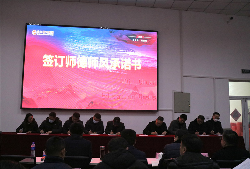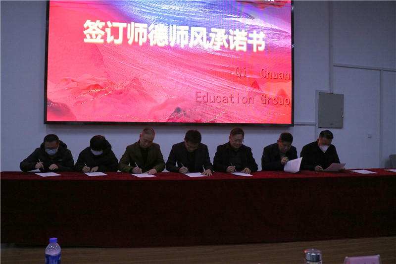 全体教师签订《师德师风承诺书》。全体启川教育人在承诺书上郑重签字,表达了做一名师德高尚的教育工作者的决心。