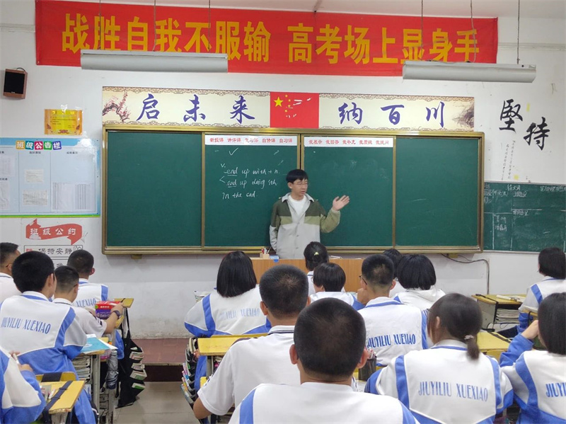 晚自习期间,嘉森学长还进班与同学们面对面交流,分享成功学习经验。