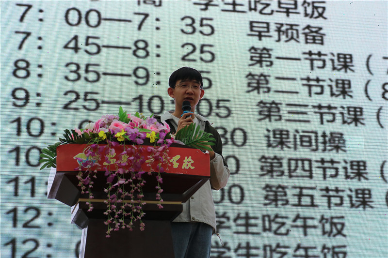 在演讲中,刘嘉森学长用亲切平和、诙谐幽默的语言向同学们讲述了他从衡水中学进入北大的学习及生活的精彩片段,以及跌宕起伏的奋斗历程,分享了自己平时的学习方法、成功秘笈、备考心得和赶超学霸的艰辛过程。演讲中穿插了一张张照片——衡水中学的作息时间表、高度等身的试卷、整齐划一的跑操、激情高效的晨读、叠成豆腐块的被子,这些照片都给同学们留下了深刻印象。